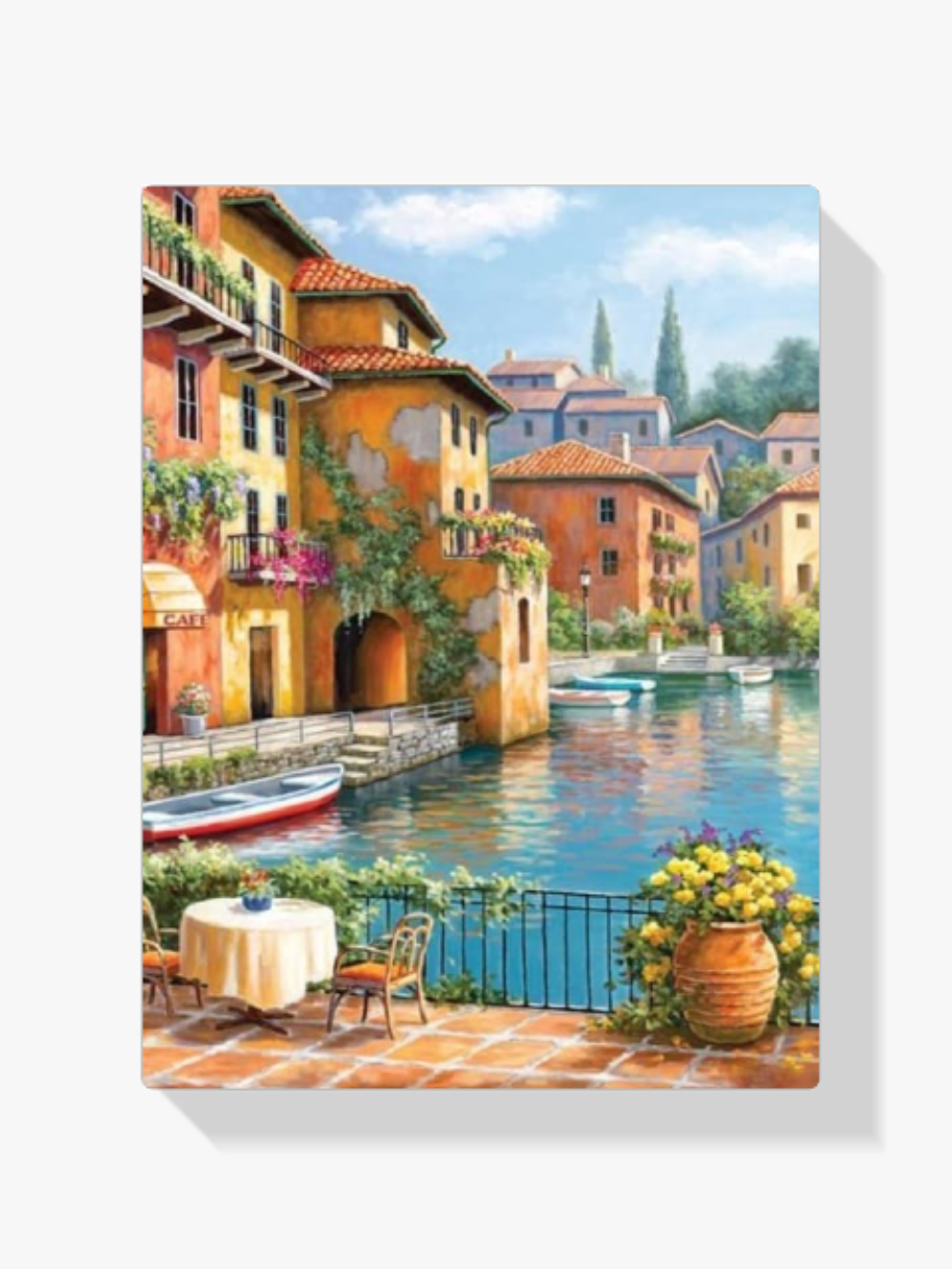 ¿Estás buscando una salida creativa, una actividad divertida para toda la familia? Esto es posible con nuestro set completo y profesional de 5D Diamond Painting – Café en el canal. Con él podrás crear los más bellos cuadros en casa. El lienzo de alta calidad y transparencia te permite realizar una obra de arte impresionante en poco tiempo. Libera tu creatividad con tus propias creaciones. Diamond Painting es el pasatiempo perfecto para ti solo o para disfrutar en familia.
