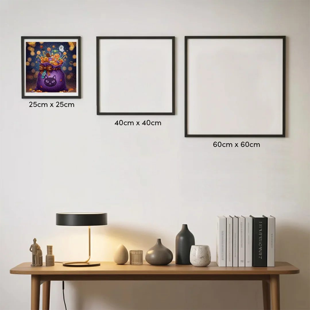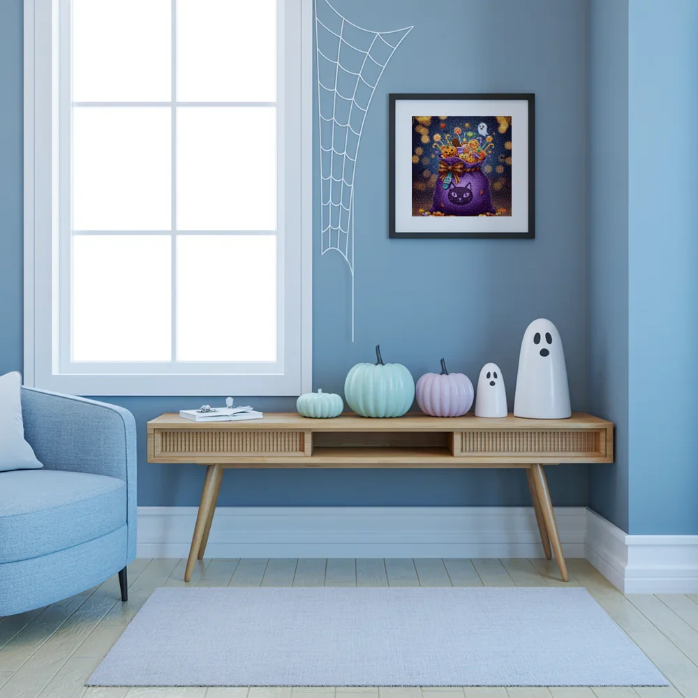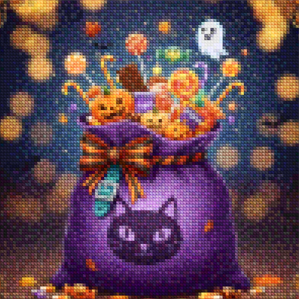 Descubre la magia del arte en pequeño formato con nuestras Mini Diamond Paintings – Bolsa de dulces de Truco o trato, una forma perfecta de relajarte, crear y disfrutar. Cada mini kit de pintura con diamantes incluye todo lo necesario para transformar pequeños diamantes brillantes en una obra de arte única y luminosa. Con materiales de alta calidad, colores vibrantes y un diseño fácil de seguir, estas pinturas son ideales tanto para principiantes como para amantes del arte.