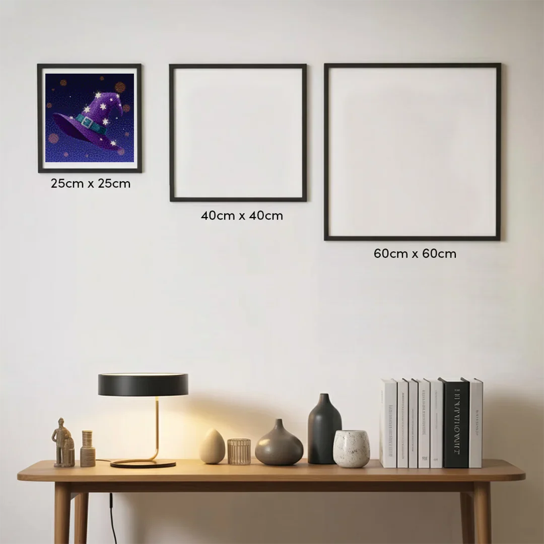 Descubre la magia del arte en pequeño formato con nuestras Mini Diamond Paintings – Sombrero de bruja y estrellas, una forma perfecta de relajarte, crear y disfrutar. Cada mini kit de pintura con diamantes incluye todo lo necesario para transformar pequeños diamantes brillantes en una obra de arte única y luminosa. Con materiales de alta calidad, colores vibrantes y un diseño fácil de seguir, estas pinturas son ideales tanto para principiantes como para amantes del arte.