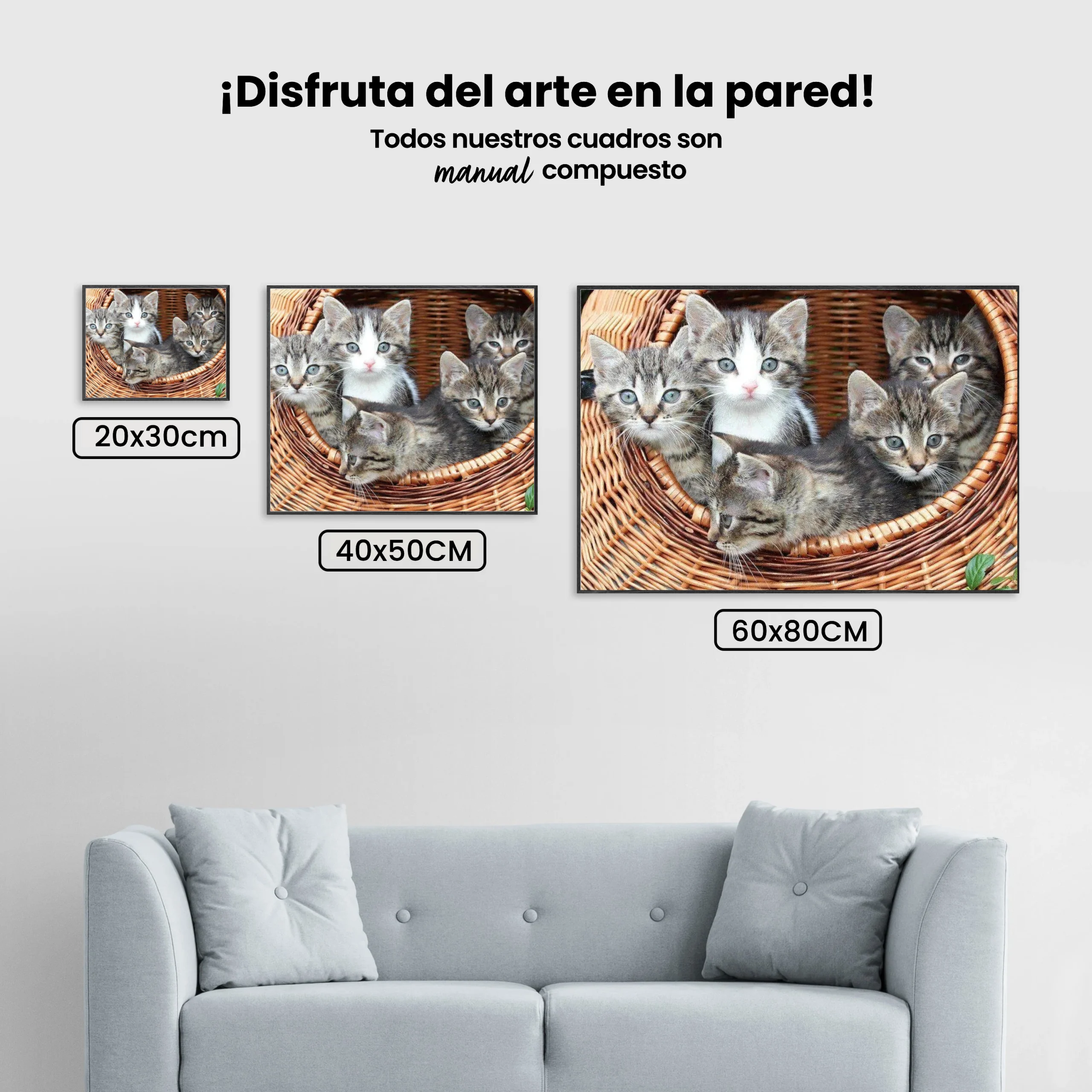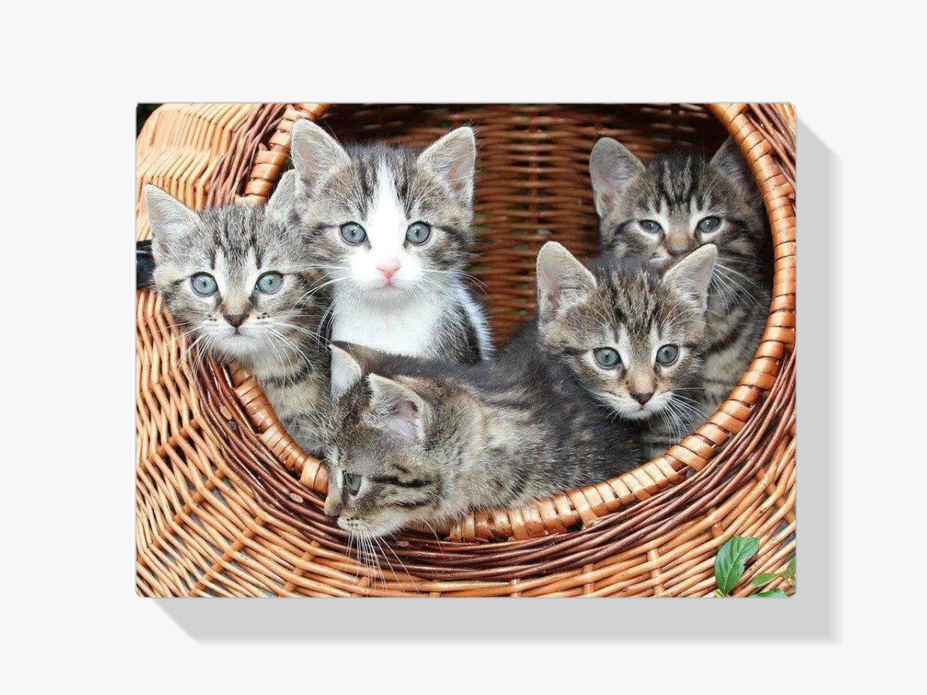¿Estás buscando una salida creativa, una actividad divertida para toda la familia? Esto es posible con nuestro set completo y profesional de Diamond Painting – 5 gatitos juntos en una cesta. Con él podrás crear los más bellos cuadros en casa. El lienzo de alta calidad y transparencia te permite realizar una obra de arte impresionante en poco tiempo. Libera tu creatividad con tus propias creaciones. Diamond Painting es el pasatiempo perfecto para ti solo o para disfrutar en familia.