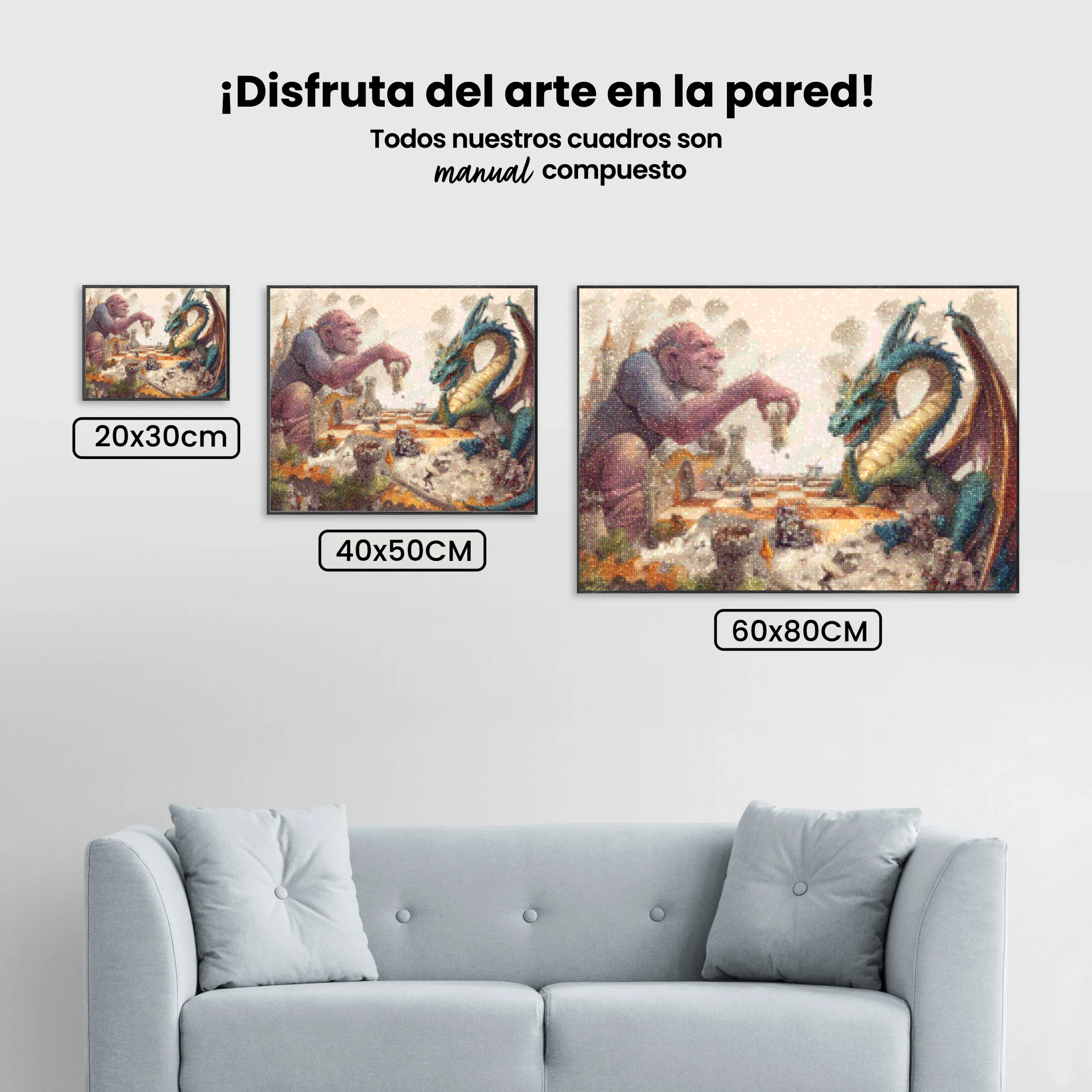 ¿Estás buscando una salida creativa, una actividad divertida para toda la familia? Esto es posible con nuestro set completo y profesional de Diamond Painting – Ajedrez gigante y dragón. Con él podrás crear los más bellos cuadros en casa. El lienzo de alta calidad y transparencia te permite realizar una obra de arte impresionante en poco tiempo. Libera tu creatividad con tus propias creaciones. Diamond Painting es el pasatiempo perfecto para ti solo o para disfrutar en familia.