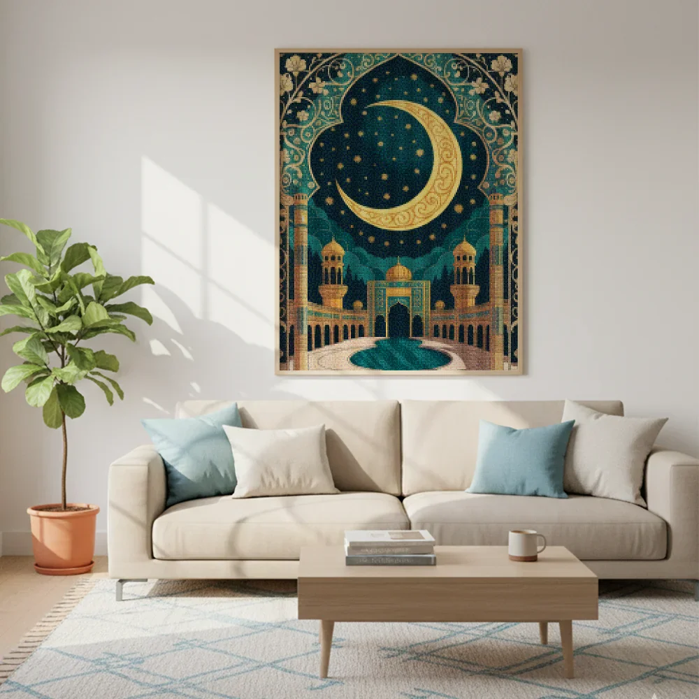 ¿Estás buscando una salida creativa, una actividad divertida para toda la familia? Esto es posible con nuestro set completo y profesional de Diamond Painting – Arco de la Media Luna Dorada. Con él podrás crear los más bellos cuadros en casa. El lienzo de alta calidad y transparencia te permite realizar una obra de arte impresionante en poco tiempo. Libera tu creatividad con tus propias creaciones. Diamond Painting es el pasatiempo perfecto para ti solo o para disfrutar en familia.