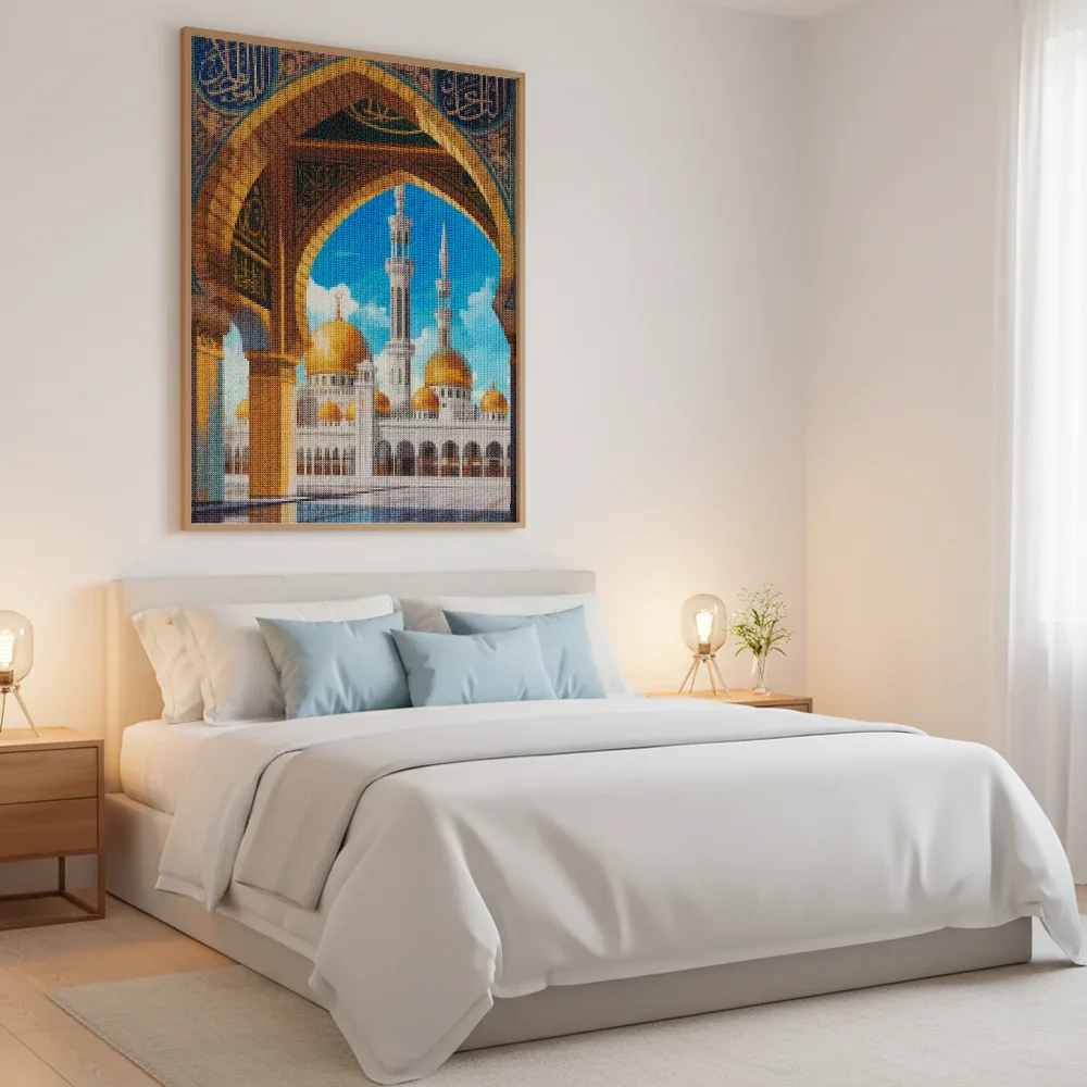 ¿Estás buscando una salida creativa, una actividad divertida para toda la familia? Esto es posible con nuestro set completo y profesional de Diamond Painting – Arcos Dorados de Zayed. Con él podrás crear los más bellos cuadros en casa. El lienzo de alta calidad y transparencia te permite realizar una obra de arte impresionante en poco tiempo. Libera tu creatividad con tus propias creaciones. Diamond Painting es el pasatiempo perfecto para ti solo o para disfrutar en familia.