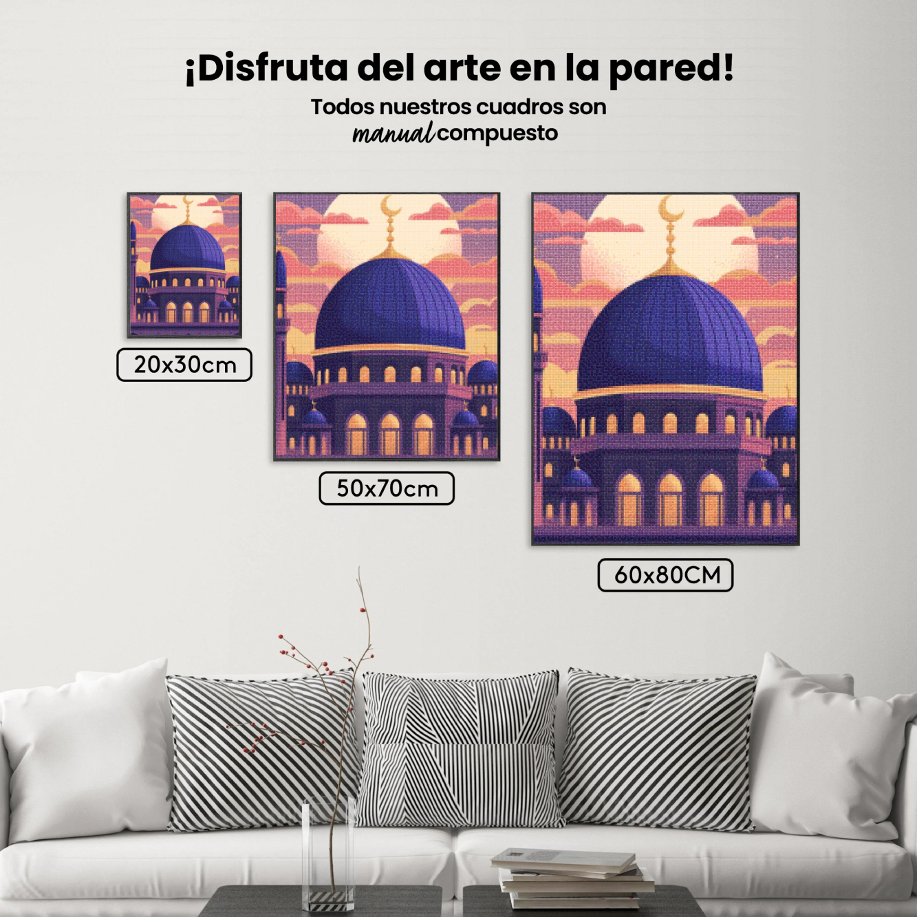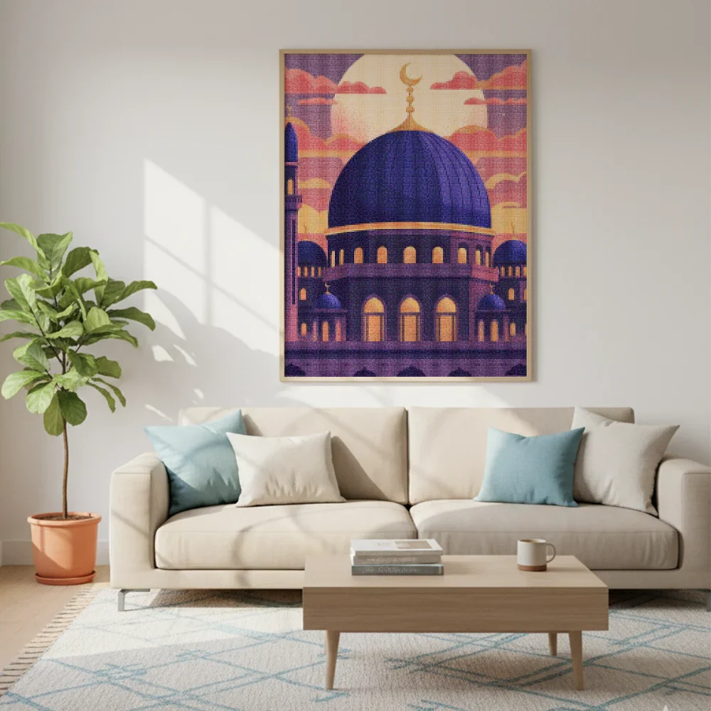 ¿Estás buscando una salida creativa, una actividad divertida para toda la familia? Esto es posible con nuestro set completo y profesional de Diamond Painting – Atardecer Islámico. Con él podrás crear los más bellos cuadros en casa. El lienzo de alta calidad y transparencia te permite realizar una obra de arte impresionante en poco tiempo. Libera tu creatividad con tus propias creaciones. Diamond Painting es el pasatiempo perfecto para ti solo o para disfrutar en familia.