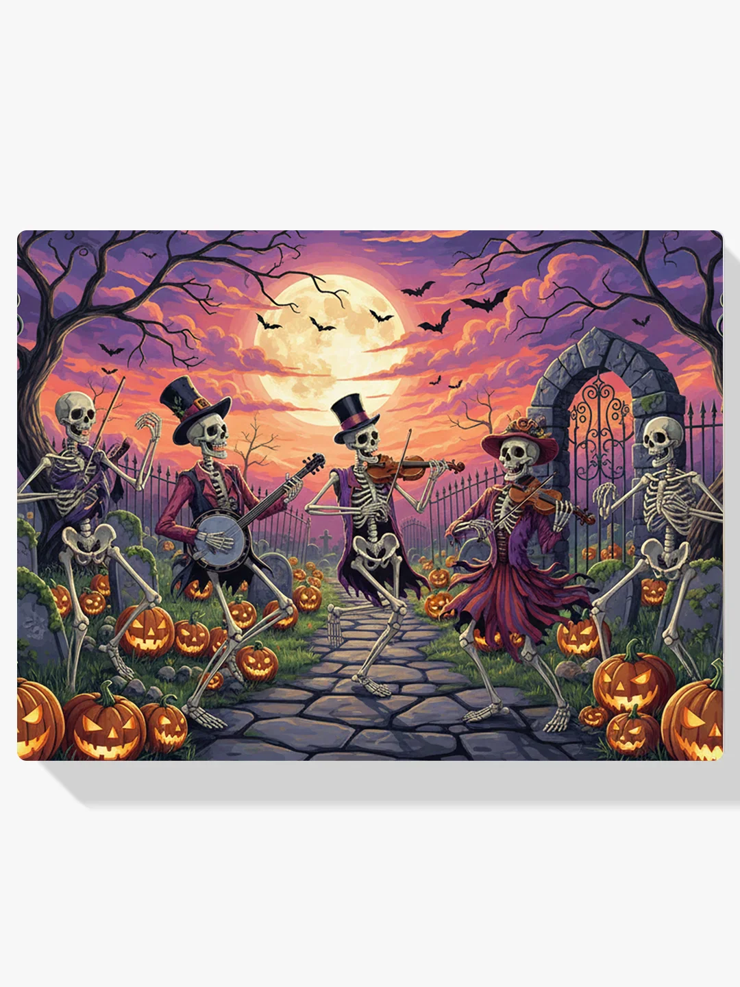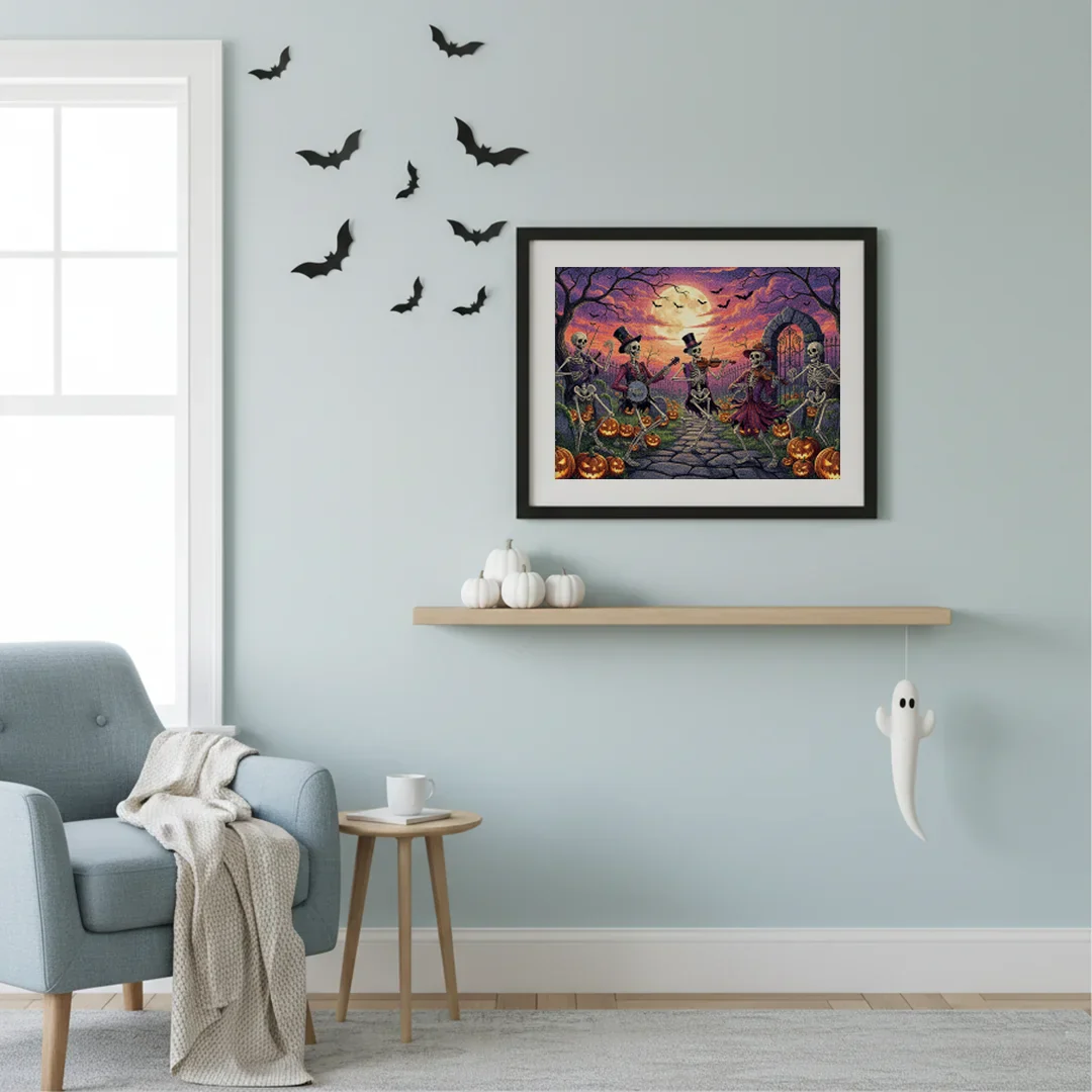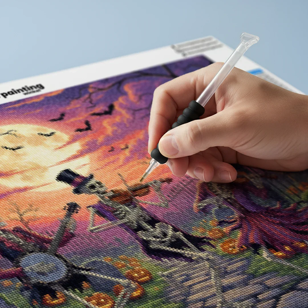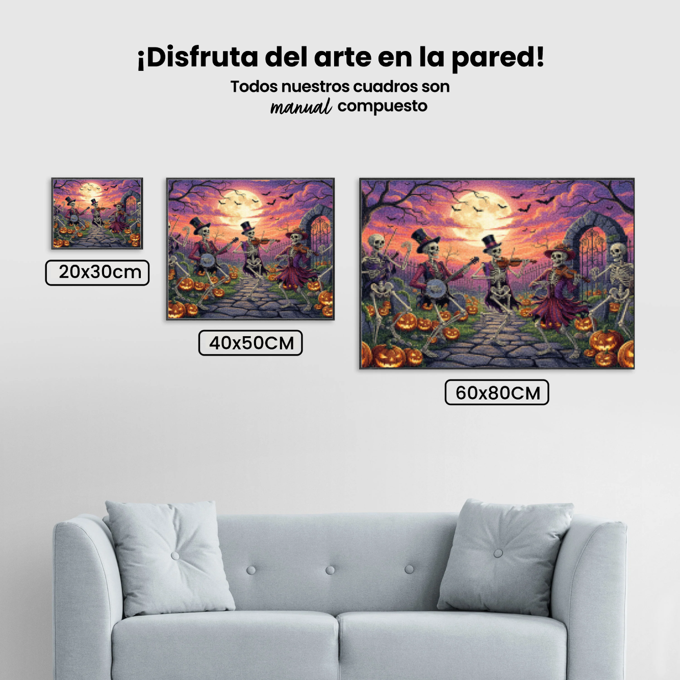 ¿Estás buscando una salida creativa, una actividad divertida para toda la familia? Esto es posible con nuestro set completo y profesional de Diamond Painting – Baile del esqueleto. Con él podrás crear los más bellos cuadros en casa. El lienzo de alta calidad y transparencia te permite realizar una obra de arte impresionante en poco tiempo. Libera tu creatividad con tus propias creaciones. Diamond Painting es el pasatiempo perfecto para ti solo o para disfrutar en familia.