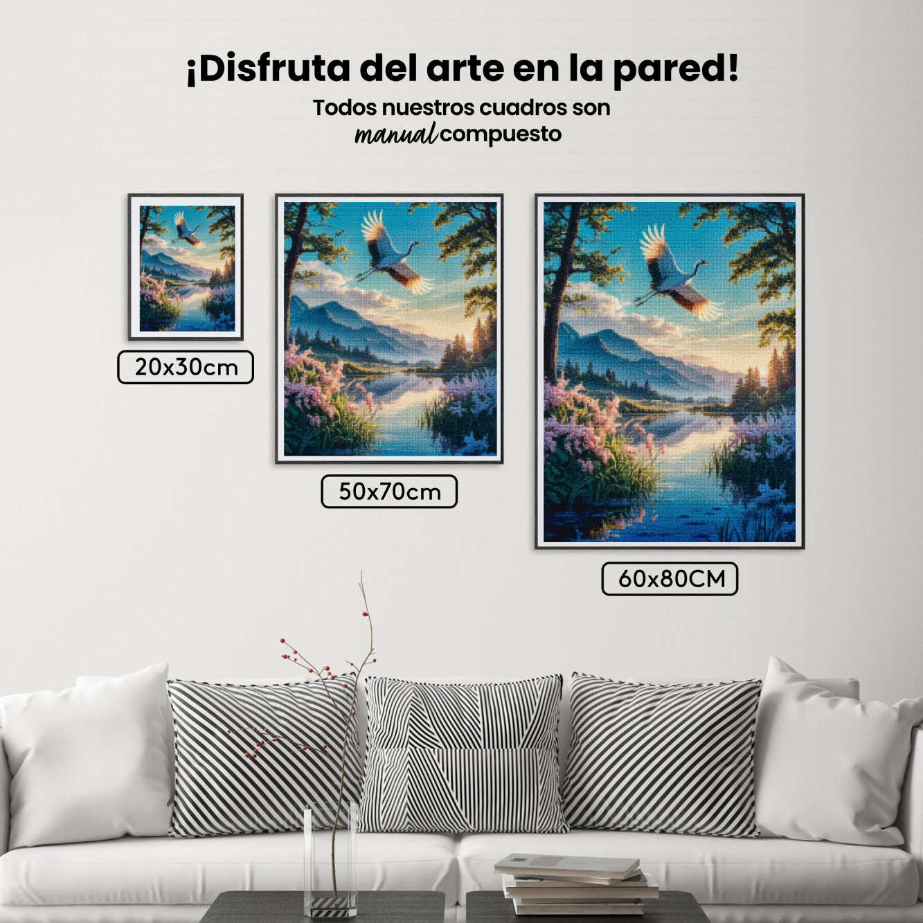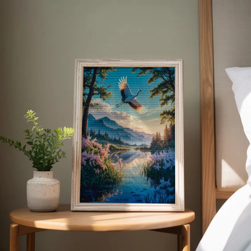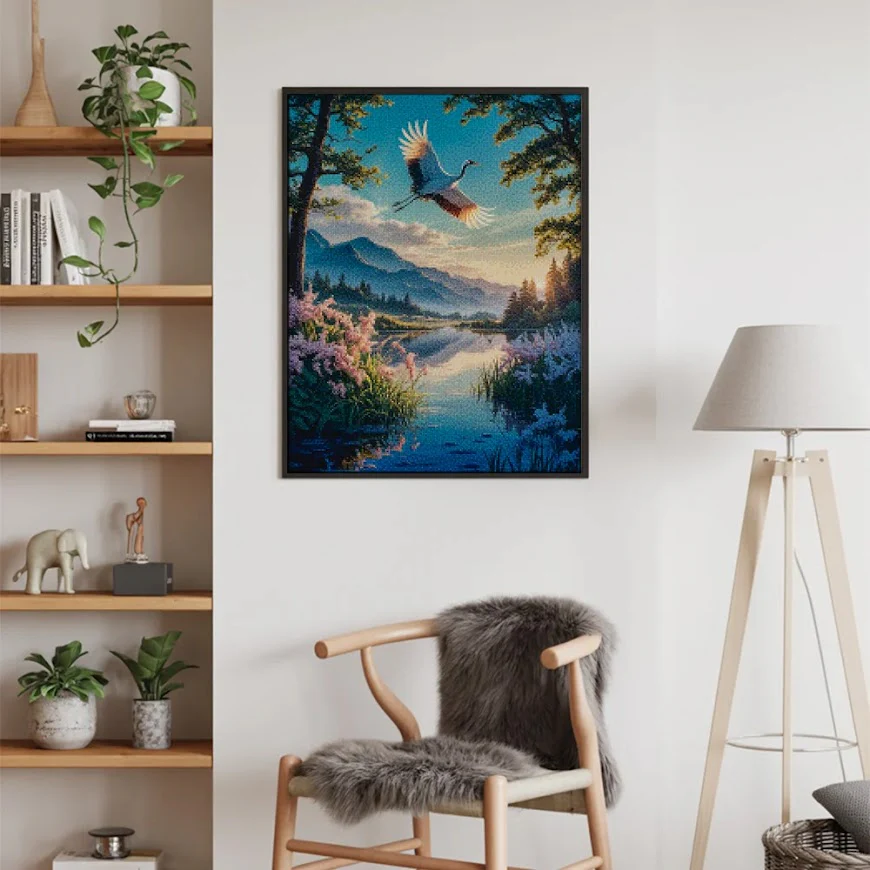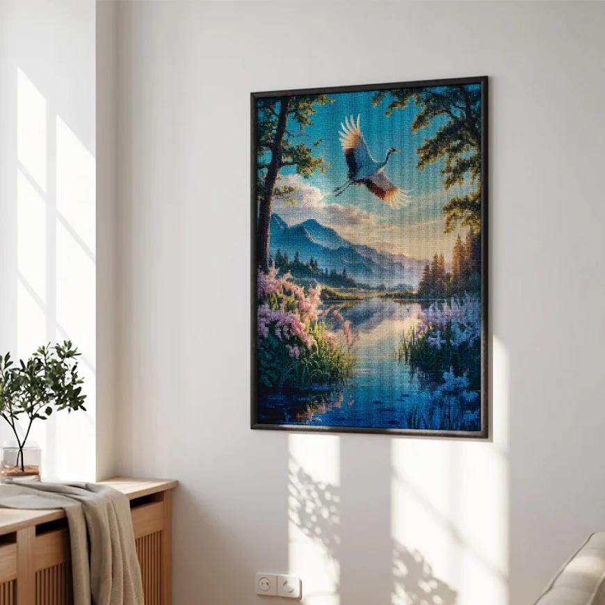 ¿Estás buscando una salida creativa, una actividad divertida para toda la familia? Esto es posible con nuestro set completo y profesional de Diamond Painting – Bajo el vuelo de la grulla. Con él podrás crear los más bellos cuadros en casa. El lienzo de alta calidad y transparencia te permite realizar una obra de arte impresionante en poco tiempo. Libera tu creatividad con tus propias creaciones. Diamond Painting es el pasatiempo perfecto para ti solo o para disfrutar en familia.