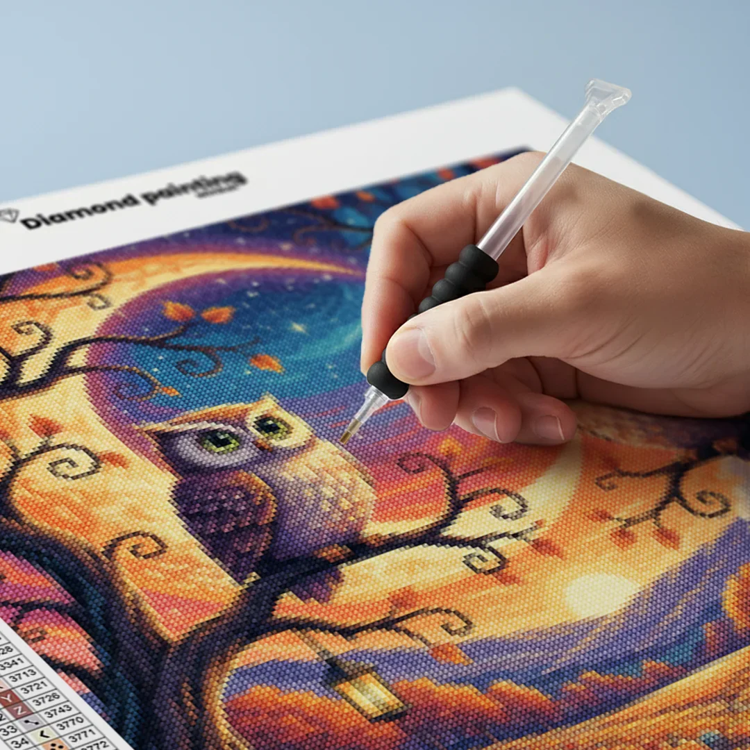Nuestros kits de Diamond Painting son muy fáciles de usar, así que puedes comenzar a crear desde el primer momento. Antes de empezar a pintar, asegúrate de que el lienzo esté plano y sin arrugas. Alisar el lienzo facilita la colocación de las piedras y la aplicación precisa de los colores. El resto es simple: pon algo de música, enciende una serie, y ¡a pintar! Se recomienda completar primero todos los cuadros de un color antes de pasar al siguiente. Esto te permitirá no tener que limpiar el aplicador tan a menudo y lograr los mejores resultados. Una vez terminada tu pintura, déjala secar al menos un día para evitar manchas y obtener el mejor resultado. Una vez seca, puedes colgarla donde desees.
