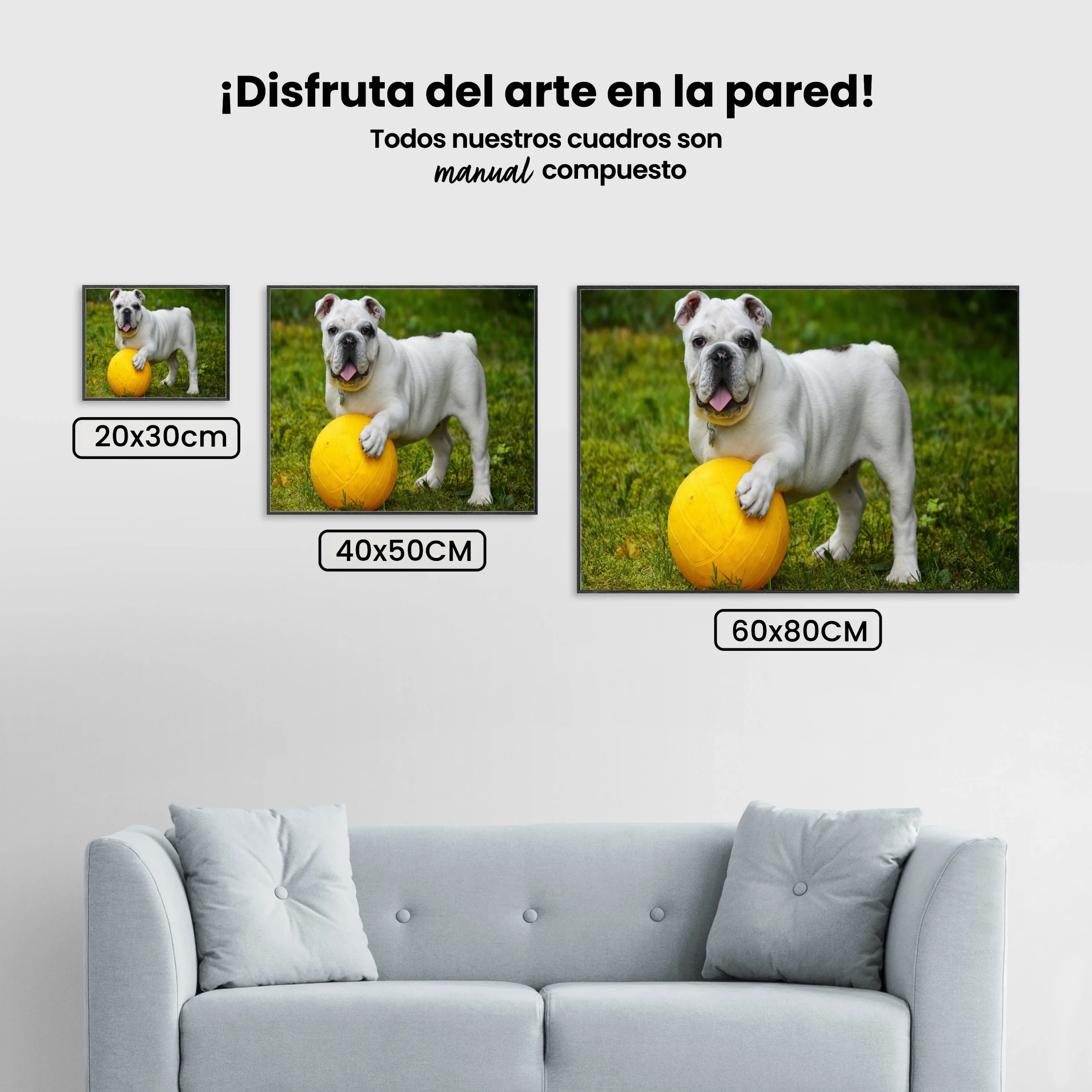 ¿Estás buscando una salida creativa, una actividad divertida para toda la familia? Esto es posible con nuestro set completo y profesional de Diamond Painting – Bulldog blanco con pelota. Con él podrás crear los más bellos cuadros en casa. El lienzo de alta calidad y transparencia te permite realizar una obra de arte impresionante en poco tiempo. Libera tu creatividad con tus propias creaciones. Diamond Painting es el pasatiempo perfecto para ti solo o para disfrutar en familia.