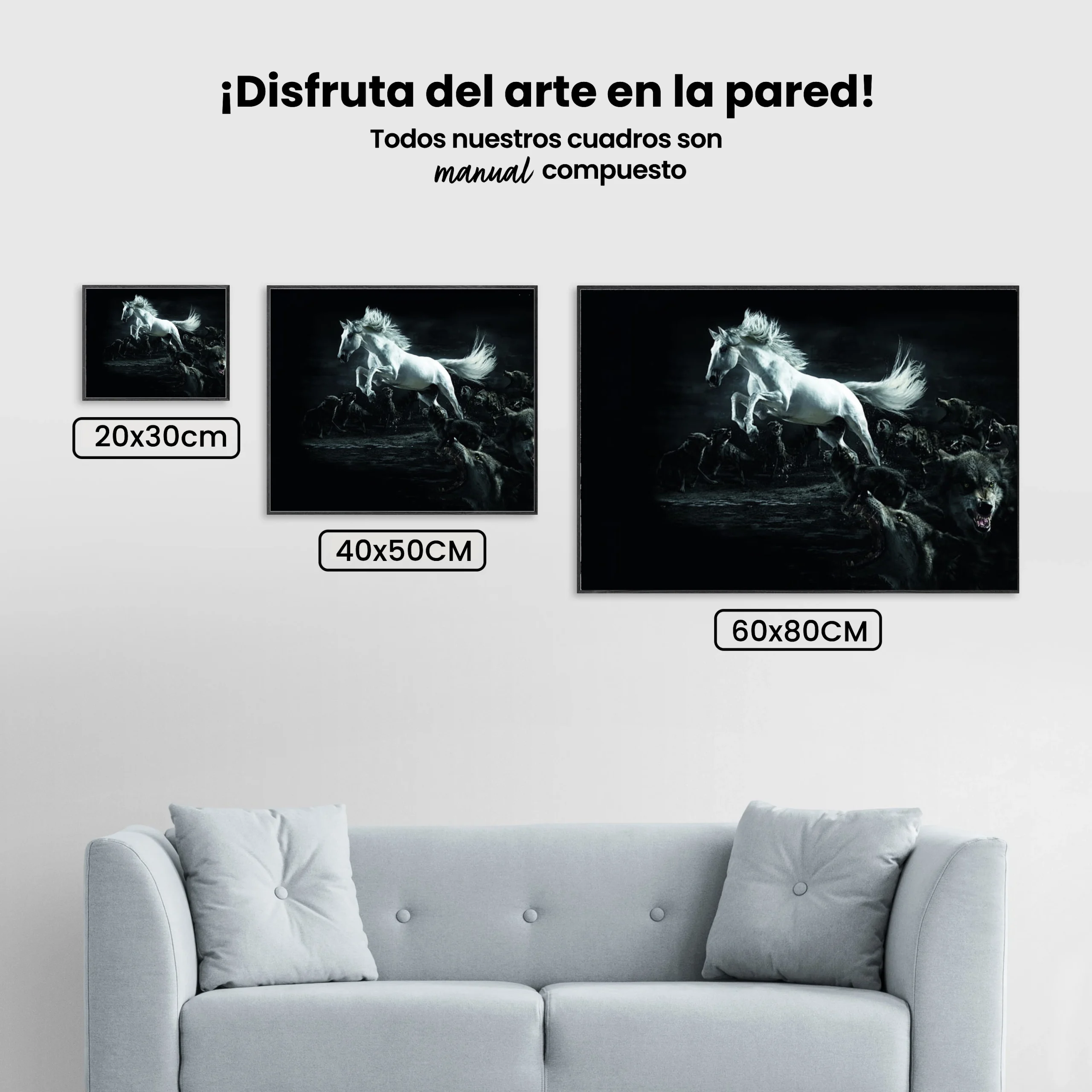 ¿Estás buscando una salida creativa, una actividad divertida para toda la familia? Esto es posible con nuestro set completo y profesional de Diamond Painting – Caballo blanco y lobos. Con él podrás crear los más bellos cuadros en casa. El lienzo de alta calidad y transparencia te permite realizar una obra de arte impresionante en poco tiempo. Libera tu creatividad con tus propias creaciones. Diamond Painting es el pasatiempo perfecto para ti solo o para disfrutar en familia.
