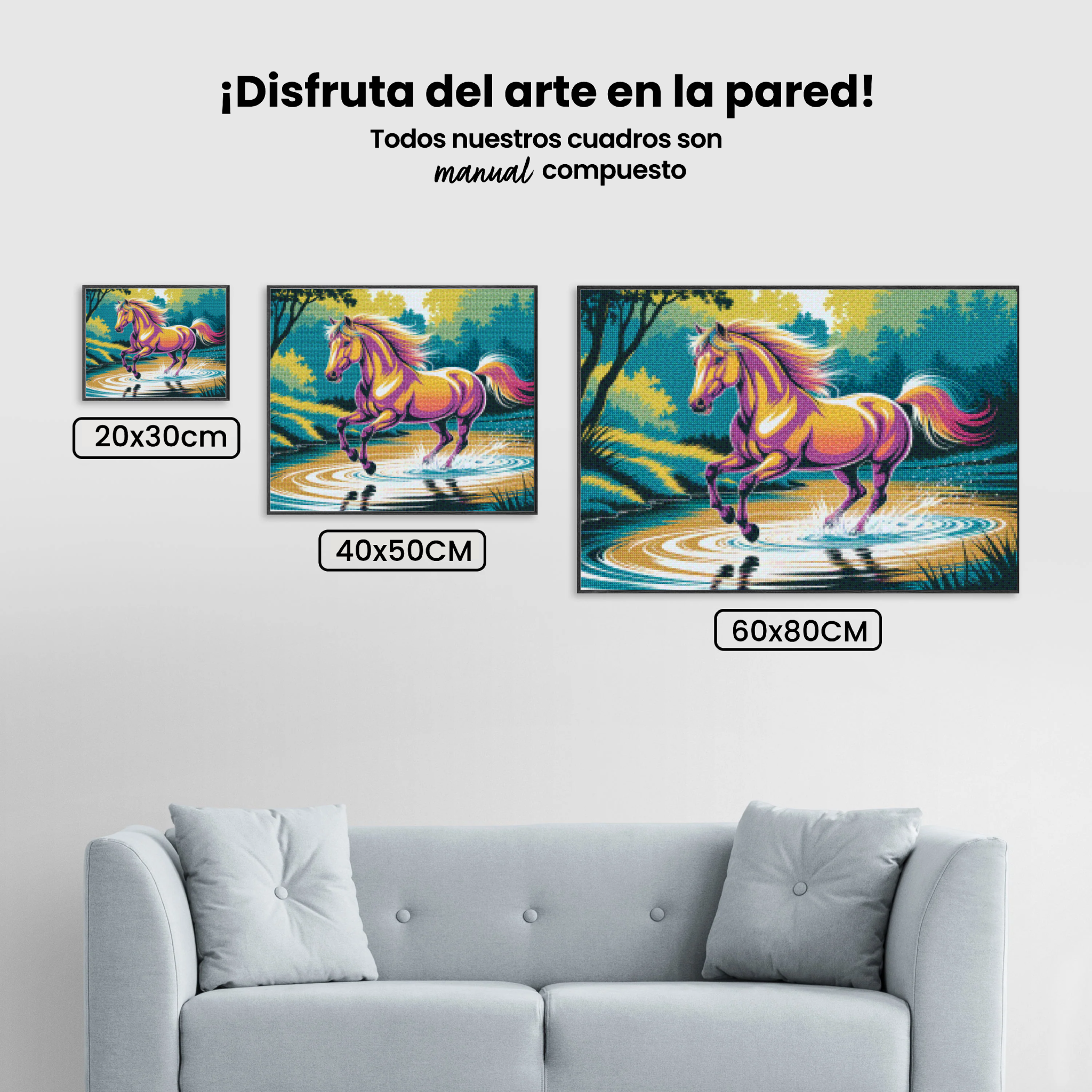 ¿Estás buscando una salida creativa, una actividad divertida para toda la familia? Esto es posible con nuestro set completo y profesional de Diamond Painting – Caballo colorido galopa por el agua. Con él podrás crear los más bellos cuadros en casa. El lienzo de alta calidad y transparencia te permite realizar una obra de arte impresionante en poco tiempo. Libera tu creatividad con tus propias creaciones. Diamond Painting es el pasatiempo perfecto para ti solo o para disfrutar en familia.