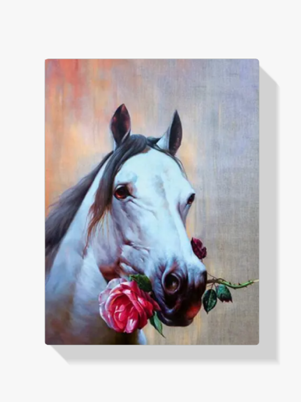 ¿Estás buscando una salida creativa, una actividad divertida para toda la familia? Esto es posible con nuestro set completo y profesional de Diamond Painting – Caballo con rosa. Con él podrás crear los más bellos cuadros en casa. El lienzo de alta calidad y transparencia te permite realizar una obra de arte impresionante en poco tiempo. Libera tu creatividad con tus propias creaciones. Diamond Painting es el pasatiempo perfecto para ti solo o para disfrutar en familia.