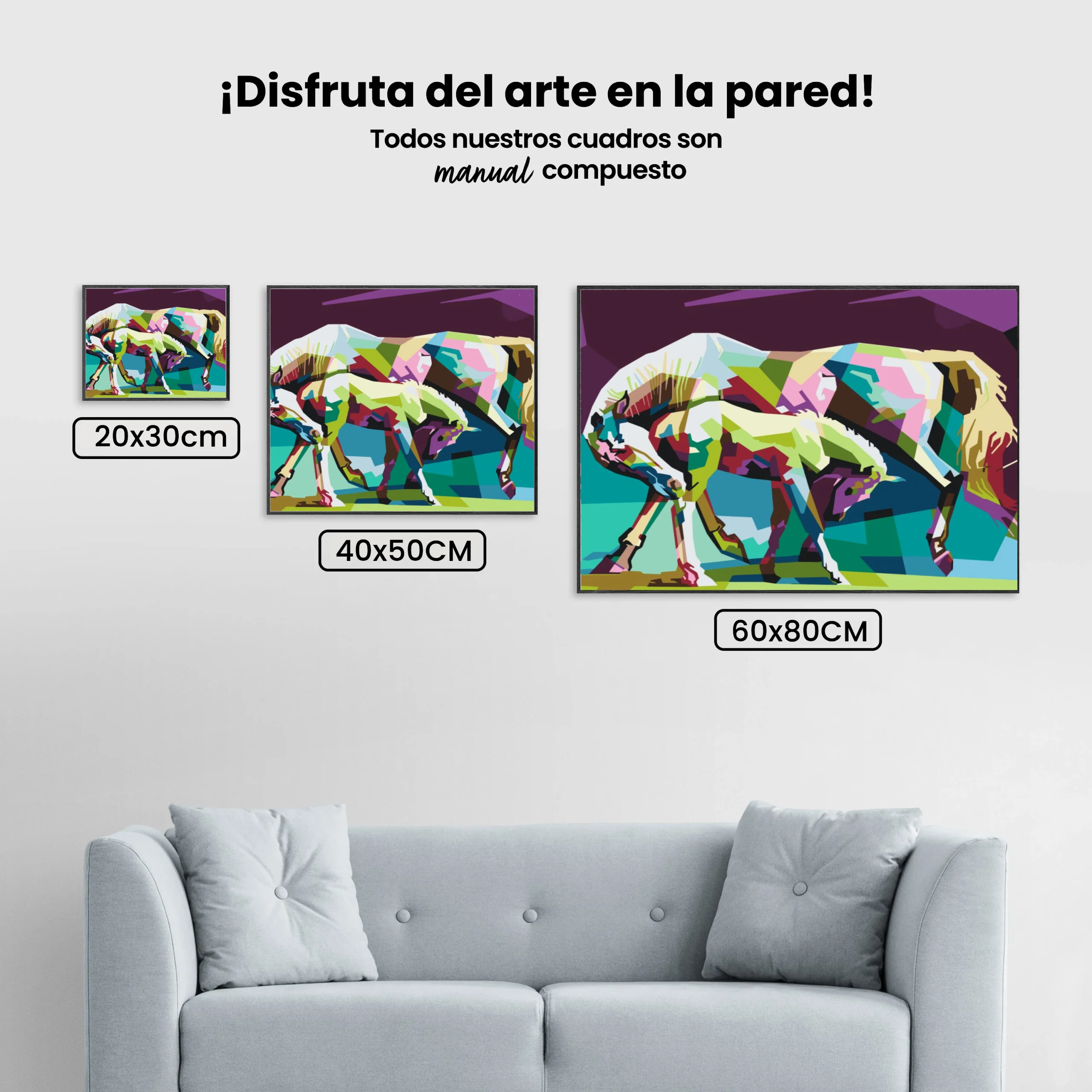 ¿Estás buscando una salida creativa, una actividad divertida para toda la familia? Esto es posible con nuestro set completo y profesional de Diamond Painting – Caballos de colores. Con él podrás crear los más bellos cuadros en casa. El lienzo de alta calidad y transparencia te permite realizar una obra de arte impresionante en poco tiempo. Libera tu creatividad con tus propias creaciones. Diamond Painting es el pasatiempo perfecto para ti solo o para disfrutar en familia.