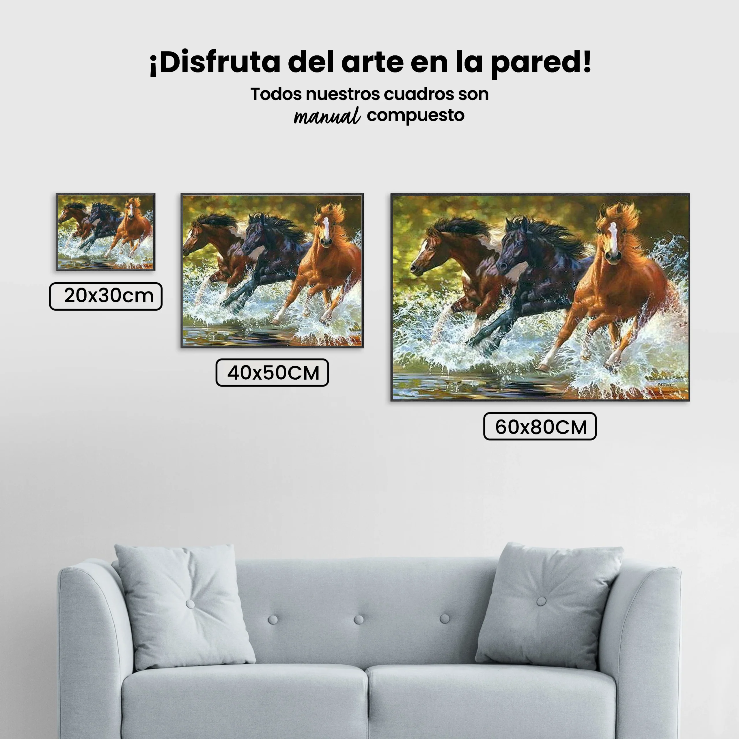¿Estás buscando una salida creativa, una actividad divertida para toda la familia? Esto es posible con nuestro set completo y profesional de Diamond Painting – Caballos en el agua. Con él podrás crear los más bellos cuadros en casa. El lienzo de alta calidad y transparencia te permite realizar una obra de arte impresionante en poco tiempo. Libera tu creatividad con tus propias creaciones. Diamond Painting es el pasatiempo perfecto para ti solo o para disfrutar en familia.