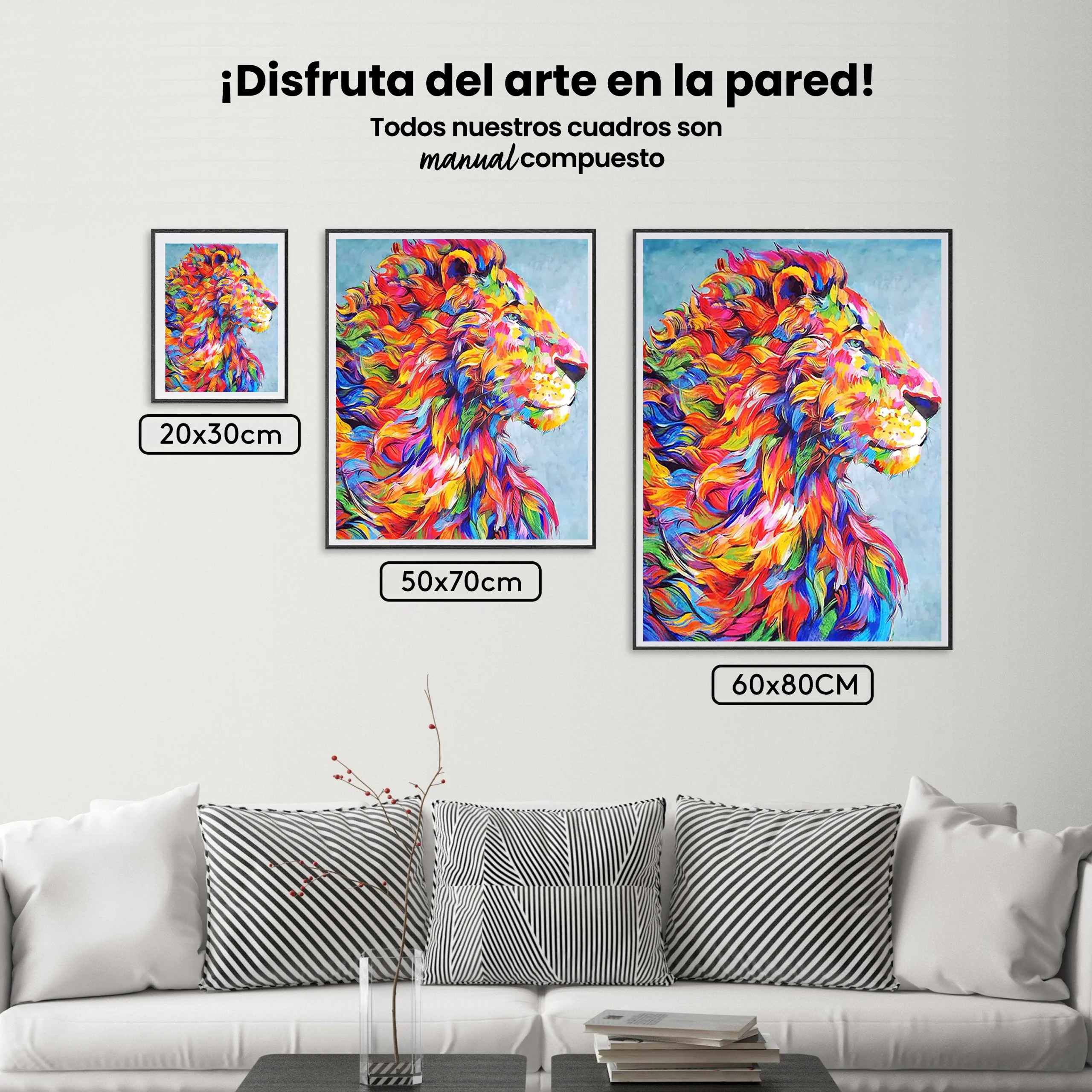 ¿Estás buscando una salida creativa, una actividad divertida para toda la familia? Esto es posible con nuestro set completo y profesional de Diamond Painting – Cabeza de león coloreada. Con él podrás crear los más bellos cuadros en casa. El lienzo de alta calidad y transparencia te permite realizar una obra de arte impresionante en poco tiempo. Libera tu creatividad con tus propias creaciones. Diamond Painting es el pasatiempo perfecto para ti solo o para disfrutar en familia.