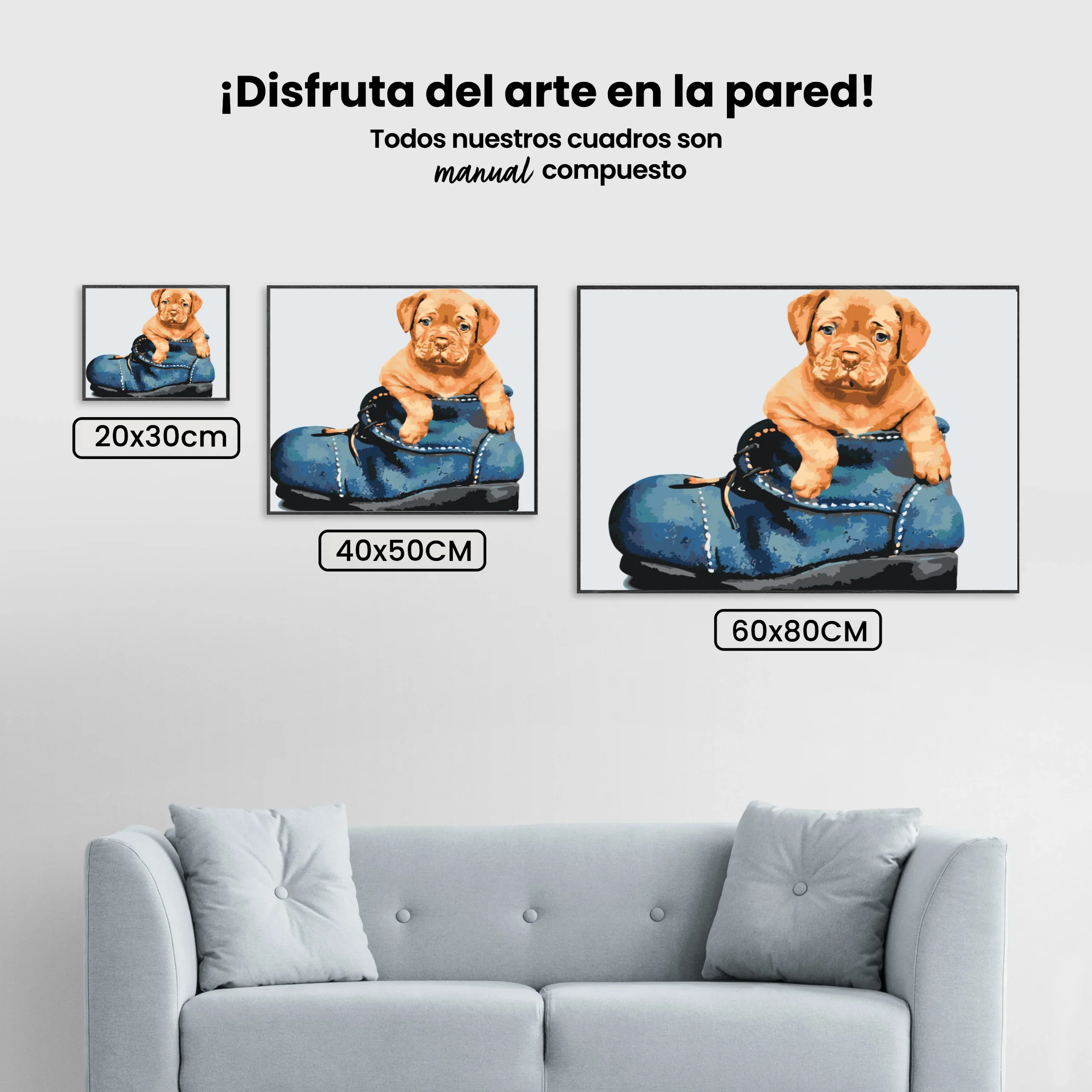 ¿Estás buscando una salida creativa, una actividad divertida para toda la familia? Esto es posible con nuestro set completo y profesional de Diamond Painting – Cachorro en el zapato. Con él podrás crear los más bellos cuadros en casa. El lienzo de alta calidad y transparencia te permite realizar una obra de arte impresionante en poco tiempo. Libera tu creatividad con tus propias creaciones. Diamond Painting es el pasatiempo perfecto para ti solo o para disfrutar en familia.