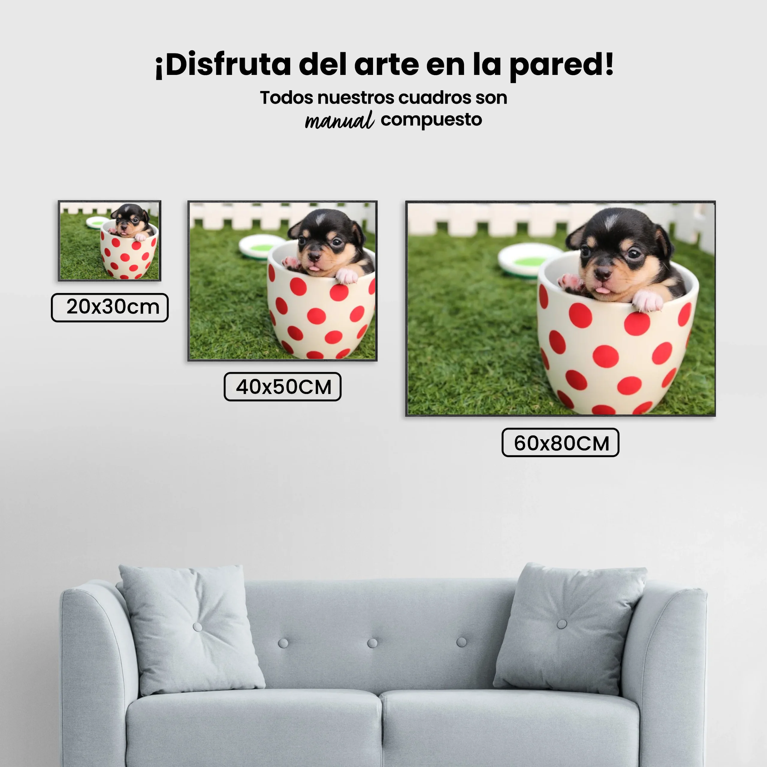 ¿Estás buscando una salida creativa, una actividad divertida para toda la familia? Esto es posible con nuestro set completo y profesional de Diamond Painting – Cachorro en una taza. Con él podrás crear los más bellos cuadros en casa. El lienzo de alta calidad y transparencia te permite realizar una obra de arte impresionante en poco tiempo. Libera tu creatividad con tus propias creaciones. Diamond Painting es el pasatiempo perfecto para ti solo o para disfrutar en familia.