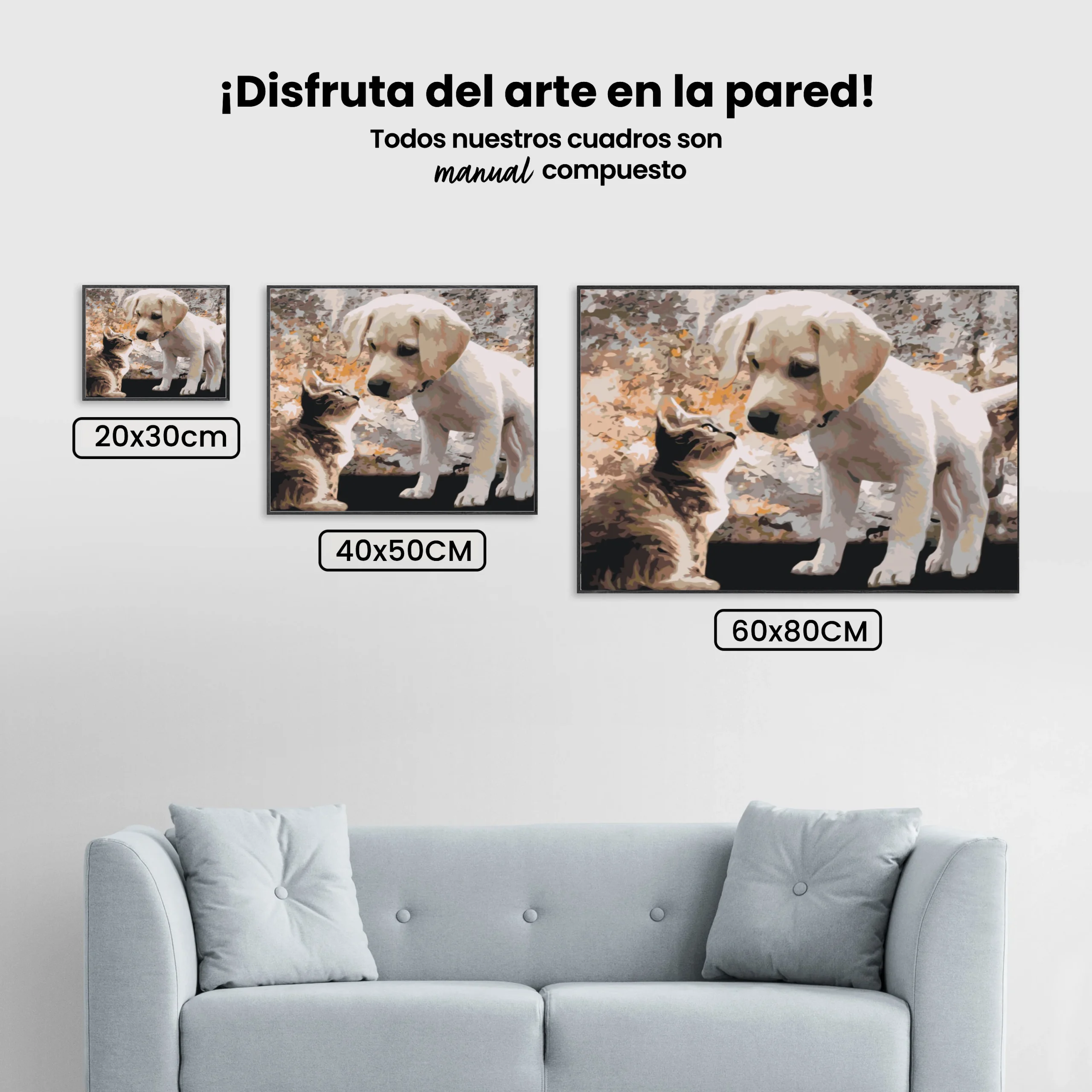 ¿Estás buscando una salida creativa, una actividad divertida para toda la familia? Esto es posible con nuestro set completo y profesional de Diamond Painting – Cachorro y gatito. Con él podrás crear los más bellos cuadros en casa. El lienzo de alta calidad y transparencia te permite realizar una obra de arte impresionante en poco tiempo. Libera tu creatividad con tus propias creaciones. Diamond Painting es el pasatiempo perfecto para ti solo o para disfrutar en familia.