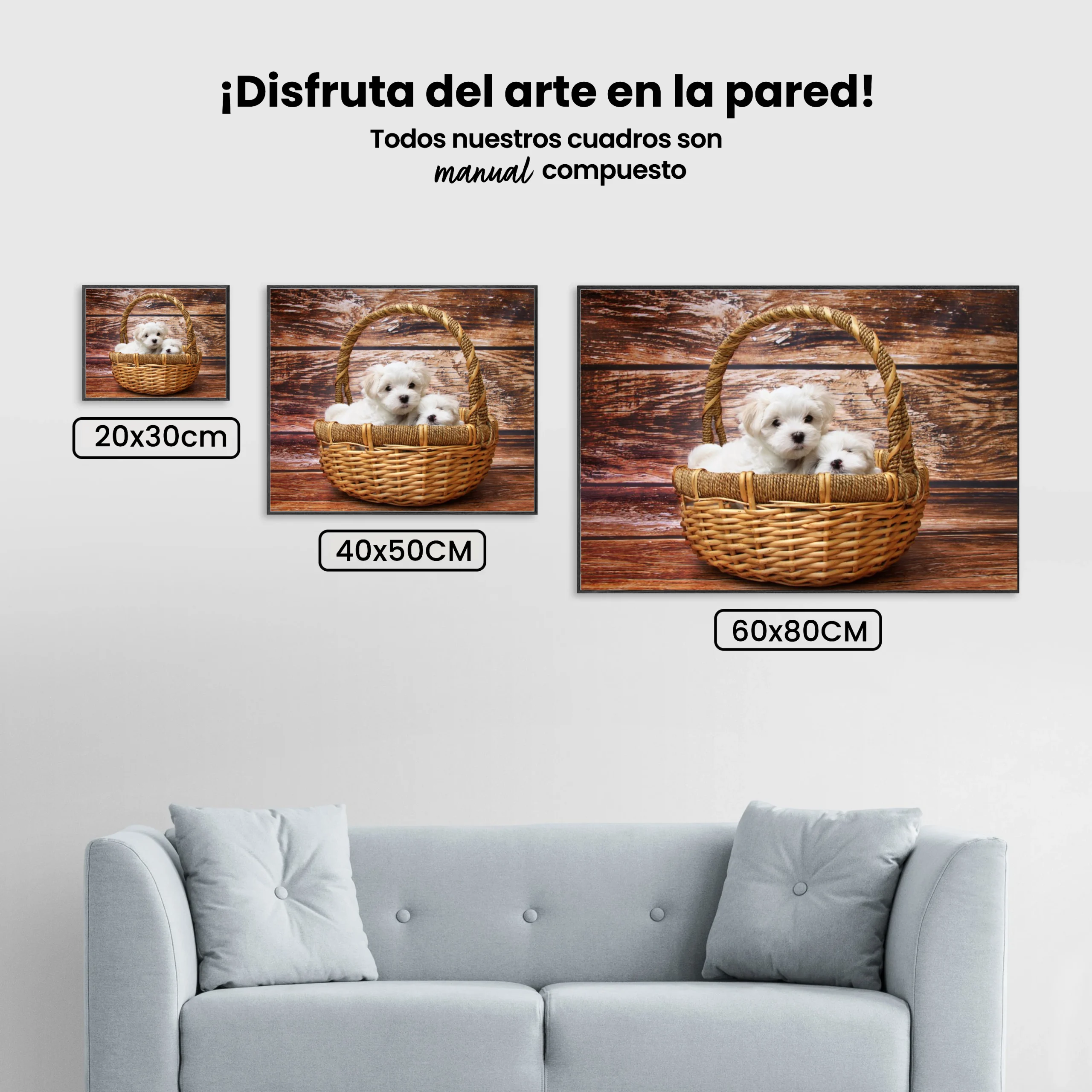 ¿Estás buscando una salida creativa, una actividad divertida para toda la familia? Esto es posible con nuestro set completo y profesional de Diamond Painting – Cachorros en una canasta. Con él podrás crear los más bellos cuadros en casa. El lienzo de alta calidad y transparencia te permite realizar una obra de arte impresionante en poco tiempo. Libera tu creatividad con tus propias creaciones. Diamond Painting es el pasatiempo perfecto para ti solo o para disfrutar en familia.