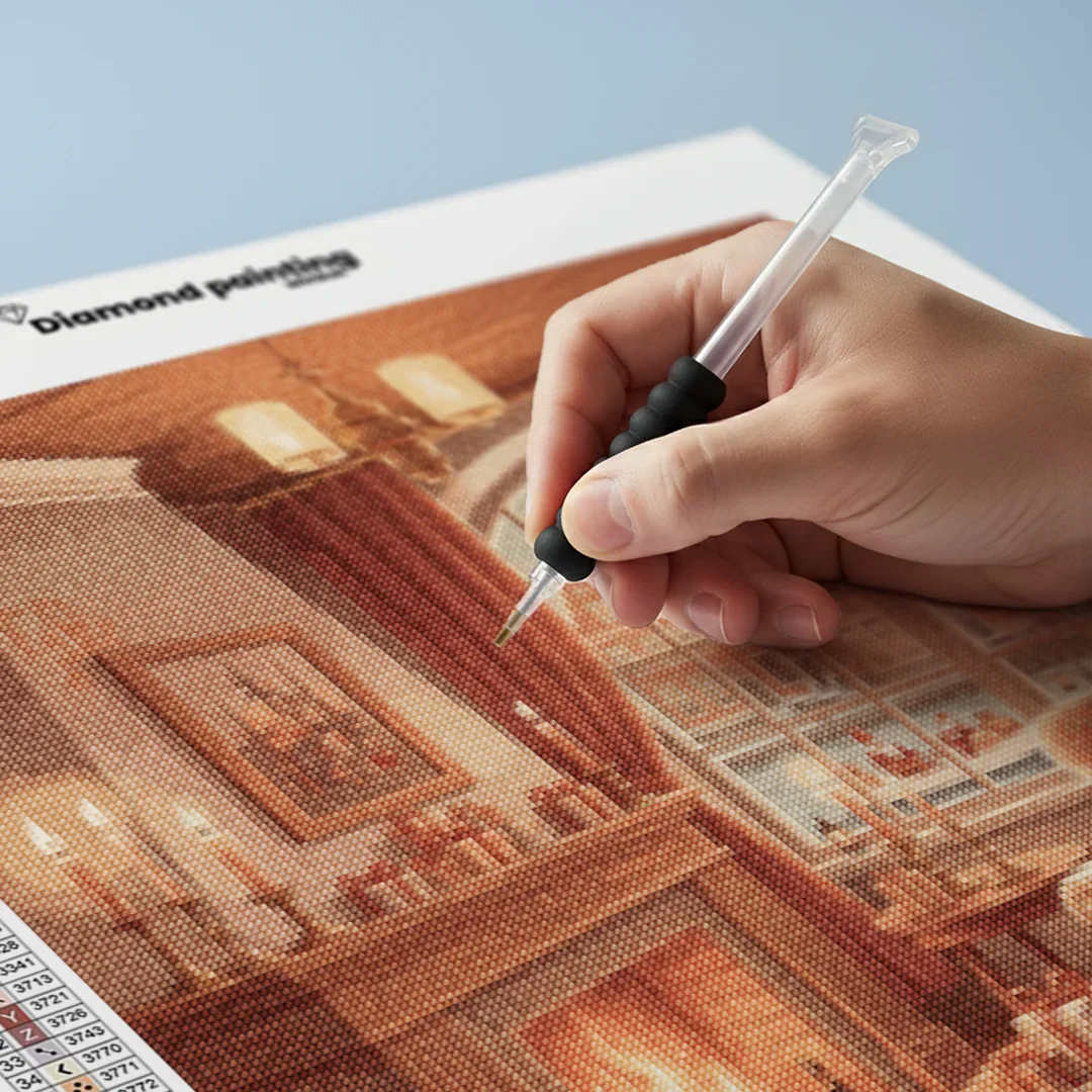 Nuestros kits de Diamond Painting son muy fáciles de usar, así que puedes comenzar a crear desde el primer momento. Antes de empezar a pintar, asegúrate de que el lienzo esté plano y sin arrugas. Alisar el lienzo facilita la colocación de las piedras y la aplicación precisa de los colores. El resto es simple: pon algo de música, enciende una serie, y ¡a pintar! Se recomienda completar primero todos los cuadros de un color antes de pasar al siguiente. Esto te permitirá no tener que limpiar el aplicador tan a menudo y lograr los mejores resultados. Una vez terminada tu pintura, déjala secar al menos un día para evitar manchas y obtener el mejor resultado. Una vez seca, puedes colgarla donde desees.