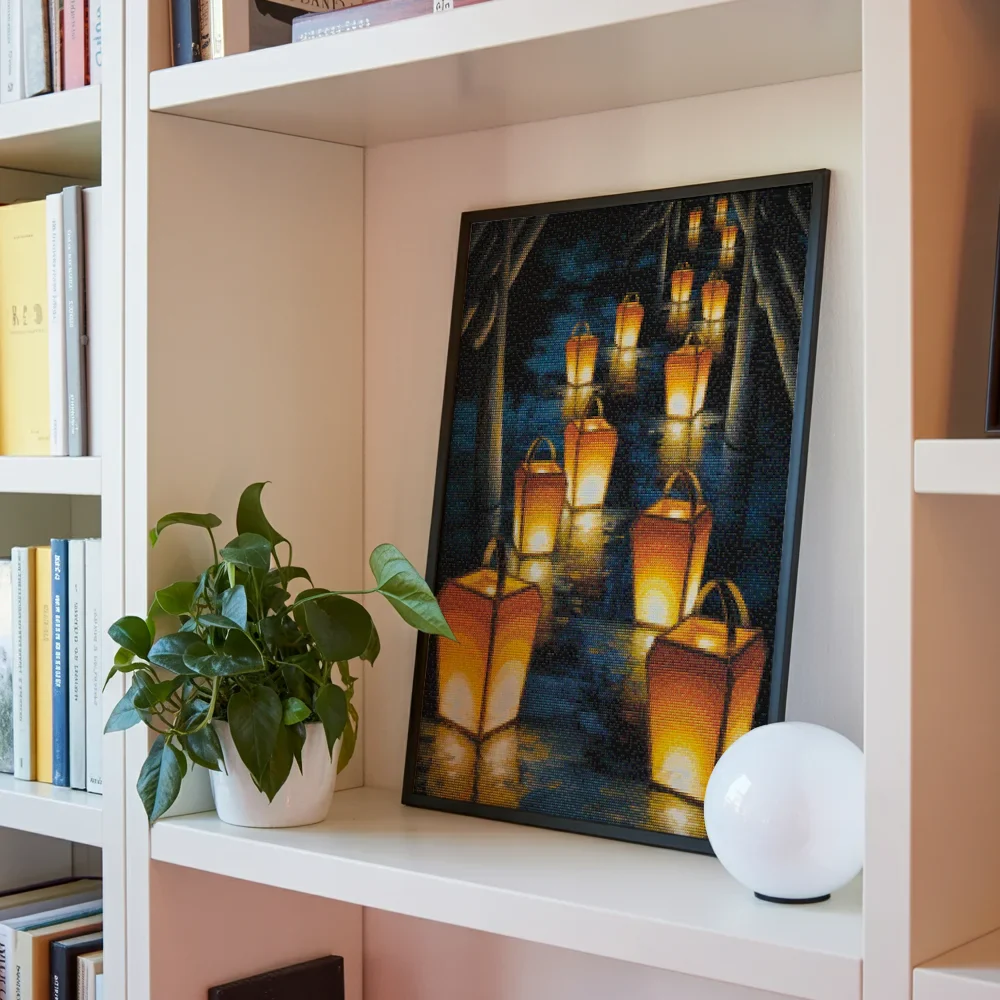 ¿Estás buscando una salida creativa, una actividad divertida para toda la familia? Esto es posible con nuestro set completo y profesional de Diamond Painting – Camino de farolillos de papel. Con él podrás crear los más bellos cuadros en casa. El lienzo de alta calidad y transparencia te permite realizar una obra de arte impresionante en poco tiempo. Libera tu creatividad con tus propias creaciones. Diamond Painting es el pasatiempo perfecto para ti solo o para disfrutar en familia.