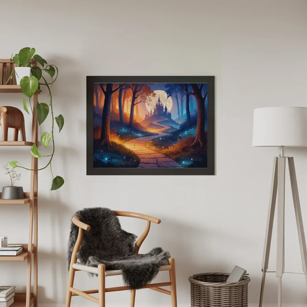 ¿Estás buscando una salida creativa, una actividad divertida para toda la familia? Esto es posible con nuestro set completo y profesional de Diamond Painting – TCamino hacia el Castillo Susurrante. Con él podrás crear los más bellos cuadros en casa. El lienzo de alta calidad y transparencia te permite realizar una obra de arte impresionante en poco tiempo. Libera tu creatividad con tus propias creaciones. Diamond Painting es el pasatiempo perfecto para ti solo o para disfrutar en familia.