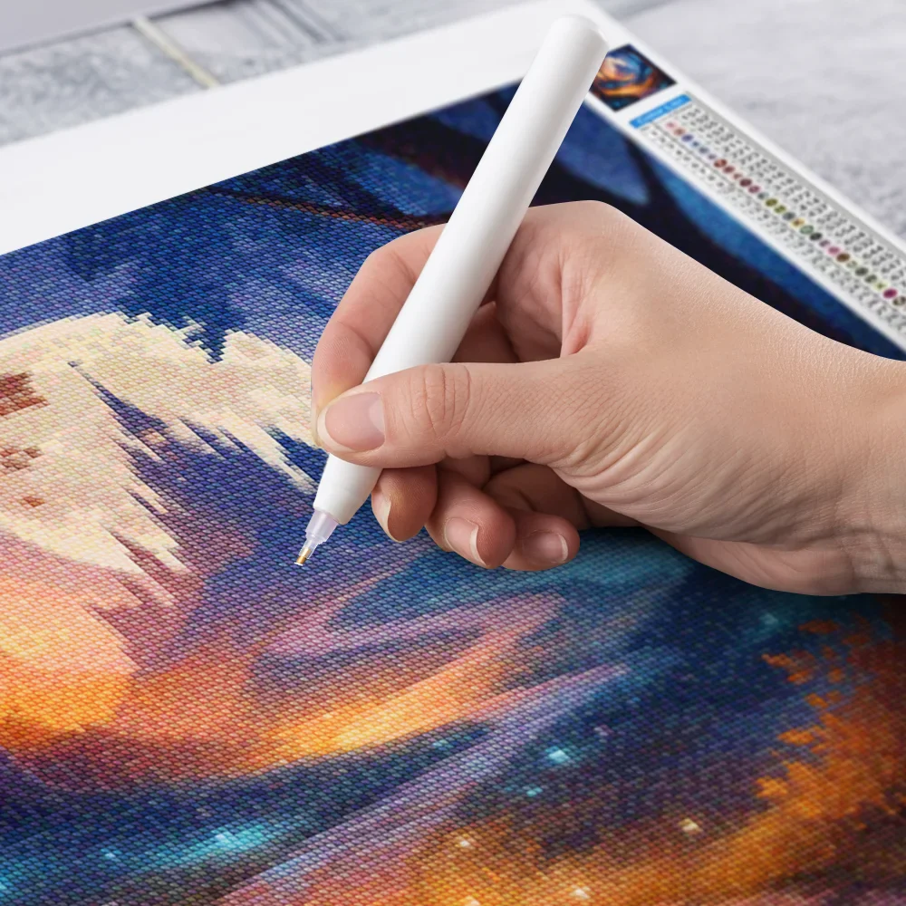 Nuestros kits de Diamond Painting son muy fáciles de usar, así que puedes comenzar a crear desde el primer momento. Antes de empezar a pintar, asegúrate de que el lienzo esté plano y sin arrugas. Alisar el lienzo facilita la colocación de las piedras y la aplicación precisa de los colores. El resto es simple: pon algo de música, enciende una serie, y ¡a pintar! Se recomienda completar primero todos los cuadros de un color antes de pasar al siguiente. Esto te permitirá no tener que limpiar el aplicador tan a menudo y lograr los mejores resultados. Una vez terminada tu pintura, déjala secar al menos un día para evitar manchas y obtener el mejor resultado. Una vez seca, puedes colgarla donde desees.