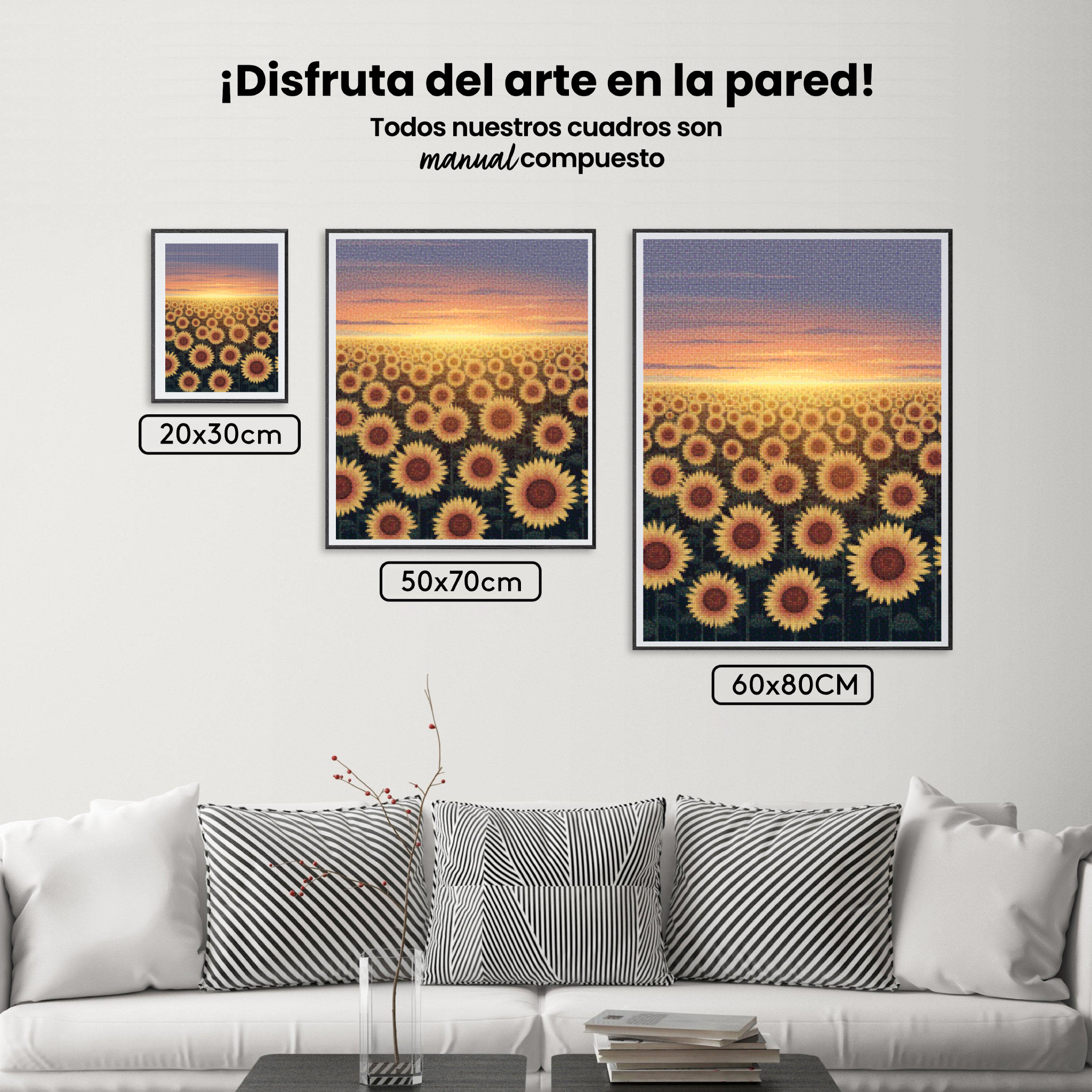 ¿Estás buscando una salida creativa, una actividad divertida para toda la familia? Esto es posible con nuestro set completo y profesional de Diamond Painting – Campo de girasoles al atardecer. Con él podrás crear los más bellos cuadros en casa. El lienzo de alta calidad y transparencia te permite realizar una obra de arte impresionante en poco tiempo. Libera tu creatividad con tus propias creaciones. Diamond Painting es el pasatiempo perfecto para ti solo o para disfrutar en familia.