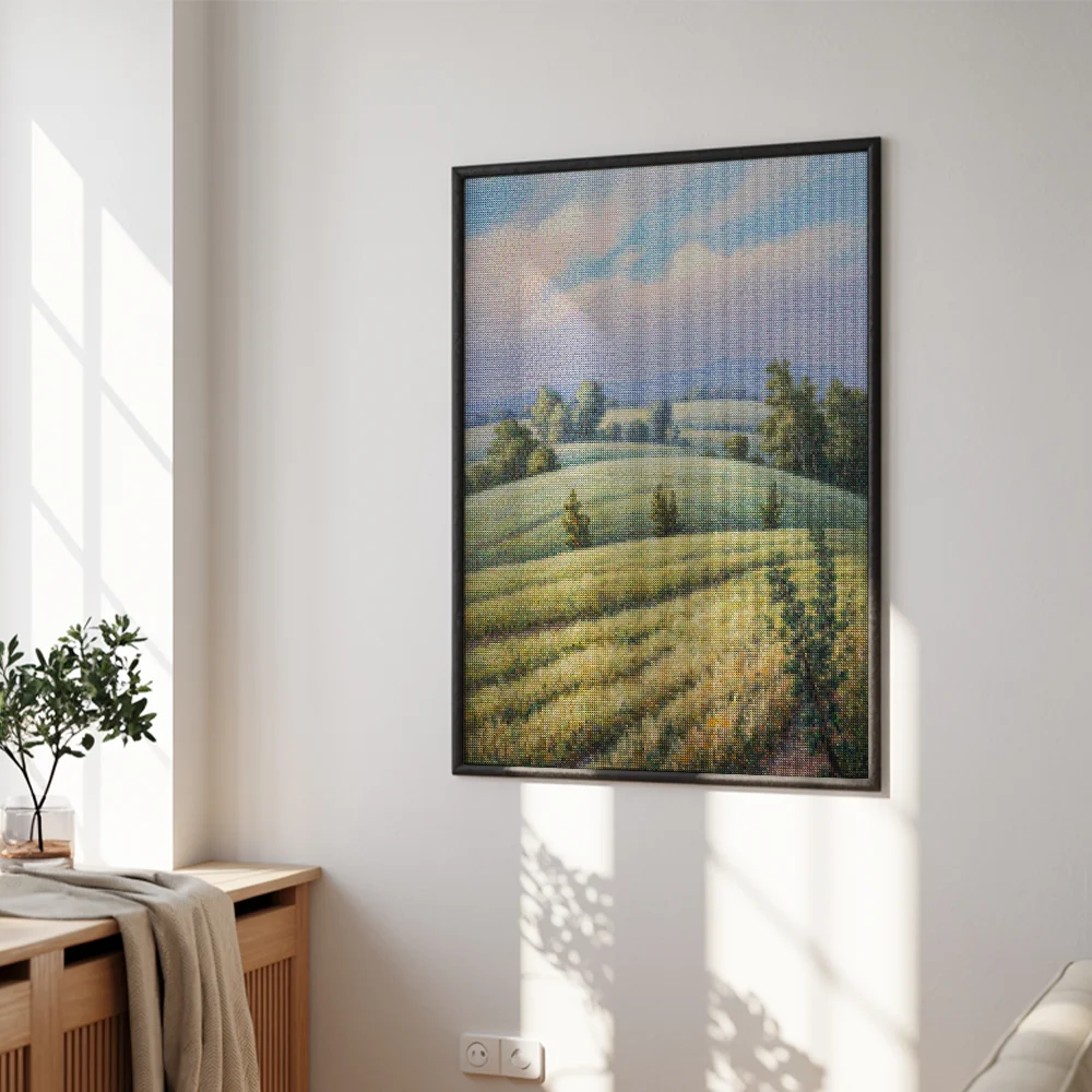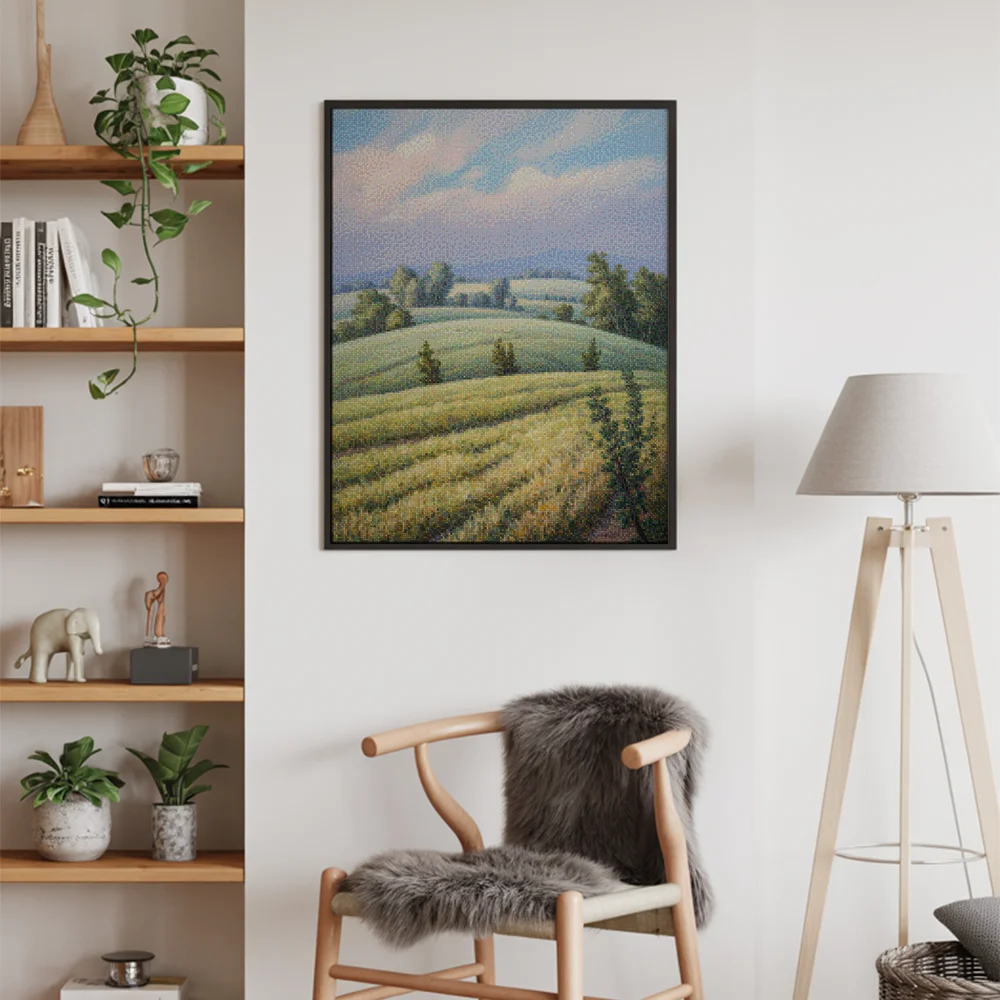¿Estás buscando una salida creativa, una actividad divertida para toda la familia? Esto es posible con nuestro set completo y profesional de Diamond Painting – Campos blandos. Con él podrás crear los más bellos cuadros en casa. El lienzo de alta calidad y transparencia te permite realizar una obra de arte impresionante en poco tiempo. Libera tu creatividad con tus propias creaciones. Diamond Painting es el pasatiempo perfecto para ti solo o para disfrutar en familia.