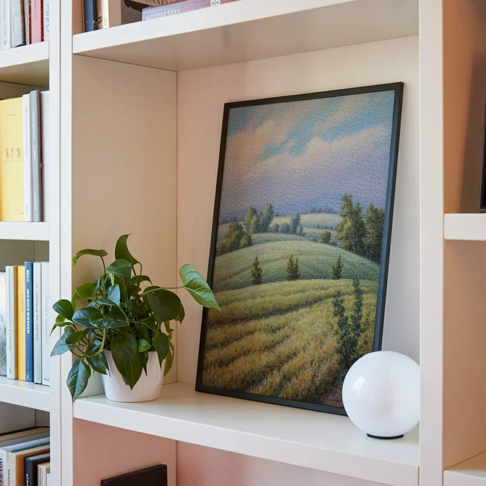 Nuestros kits de Diamond Painting son muy fáciles de usar, así que puedes comenzar a crear desde el primer momento. Antes de empezar a pintar, asegúrate de que el lienzo esté plano y sin arrugas. Alisar el lienzo facilita la colocación de las piedras y la aplicación precisa de los colores. El resto es simple: pon algo de música, enciende una serie, y ¡a pintar! Se recomienda completar primero todos los cuadros de un color antes de pasar al siguiente. Esto te permitirá no tener que limpiar el aplicador tan a menudo y lograr los mejores resultados. Una vez terminada tu pintura, déjala secar al menos un día para evitar manchas y obtener el mejor resultado. Una vez seca, puedes colgarla donde desees.