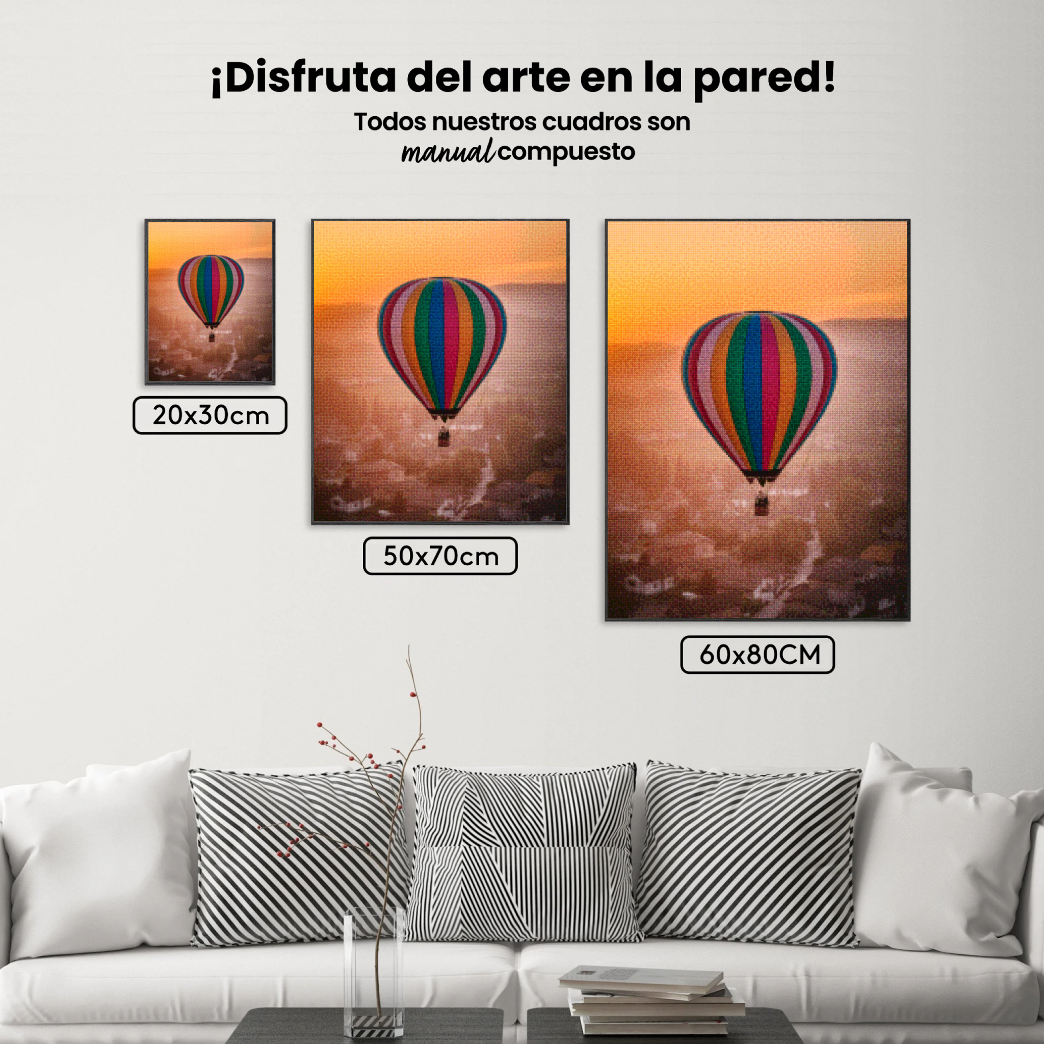 ¿Estás buscando una salida creativa, una actividad divertida para toda la familia? Esto es posible con nuestro set completo y profesional de Diamond Painting – Caprichosos globos aerostáticos sobre un pueblo. Con él podrás crear los más bellos cuadros en casa. El lienzo de alta calidad y transparencia te permite realizar una obra de arte impresionante en poco tiempo. Libera tu creatividad con tus propias creaciones. Diamond Painting es el pasatiempo perfecto para ti solo o para disfrutar en familia.
