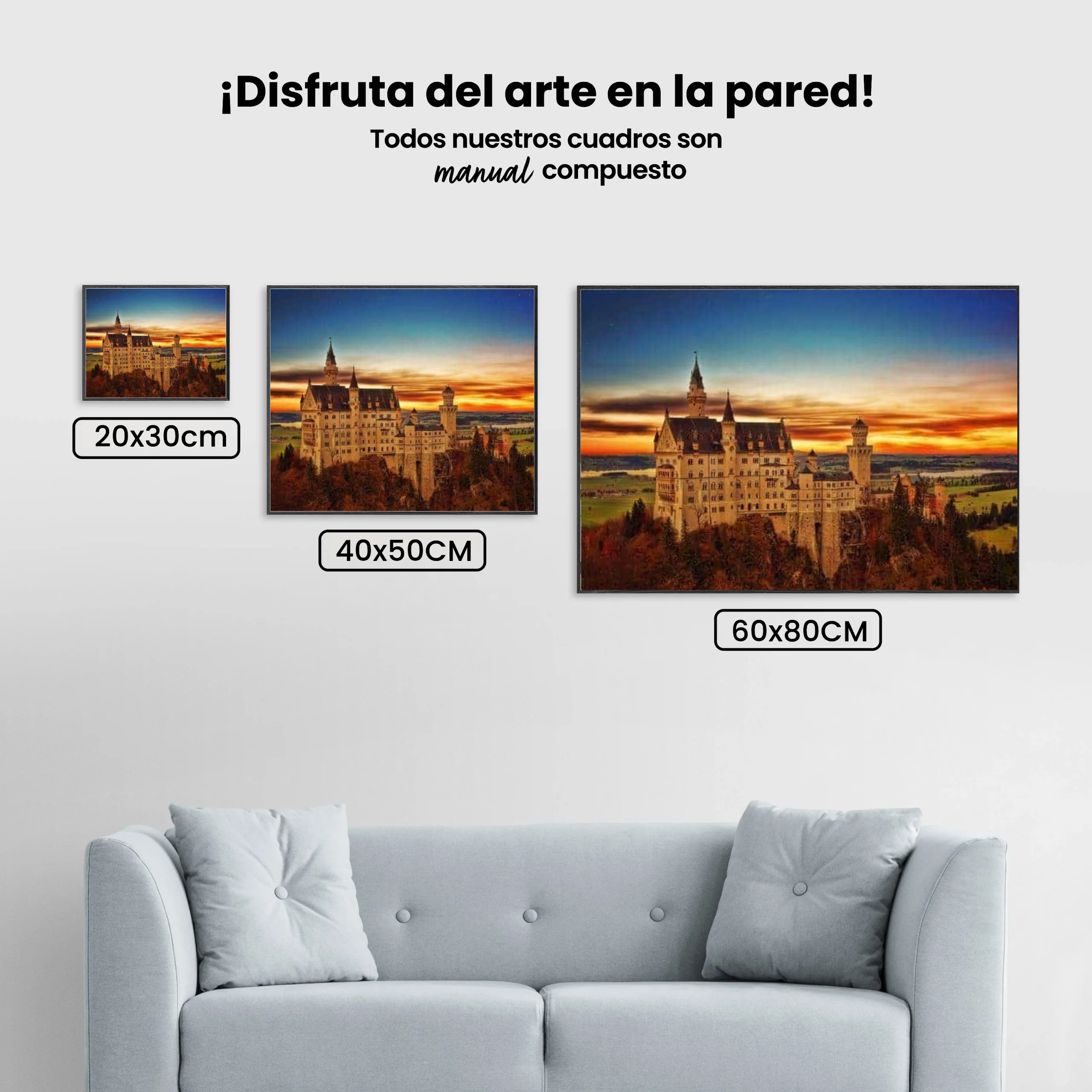 ¿Estás buscando una salida creativa, una actividad divertida para toda la familia? Esto es posible con nuestro set completo y profesional de Diamond Painting – Castillo con puesta de sol. Con él podrás crear los más bellos cuadros en casa. El lienzo de alta calidad y transparencia te permite realizar una obra de arte impresionante en poco tiempo. Libera tu creatividad con tus propias creaciones. Diamond Painting es el pasatiempo perfecto para ti solo o para disfrutar en familia.