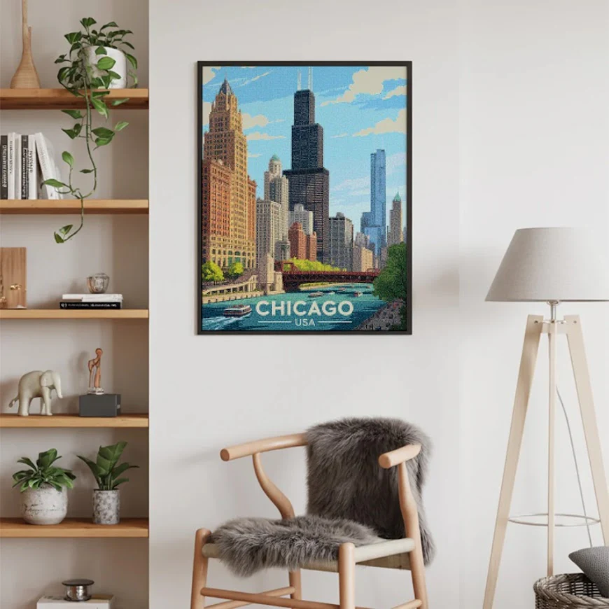 ¿Estás buscando una salida creativa, una actividad divertida para toda la familia? Esto es posible con nuestro set completo y profesional de Diamond Painting – Chicago, USA. Con él podrás crear los más bellos cuadros en casa. El lienzo de alta calidad y transparencia te permite realizar una obra de arte impresionante en poco tiempo. Libera tu creatividad con tus propias creaciones. Diamond Painting es el pasatiempo perfecto para ti solo o para disfrutar en familia.