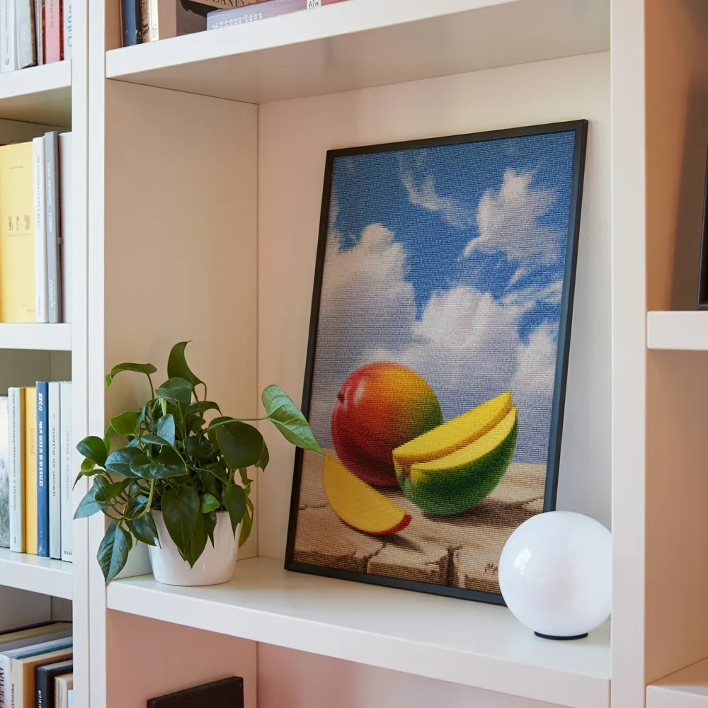 ¿Estás buscando una salida creativa, una actividad divertida para toda la familia? Esto es posible con nuestro set completo y profesional de Diamond Painting – Cielos de mango. Con él podrás crear los más bellos cuadros en casa. El lienzo de alta calidad y transparencia te permite realizar una obra de arte impresionante en poco tiempo. Libera tu creatividad con tus propias creaciones. Diamond Painting es el pasatiempo perfecto para ti solo o para disfrutar en familia.