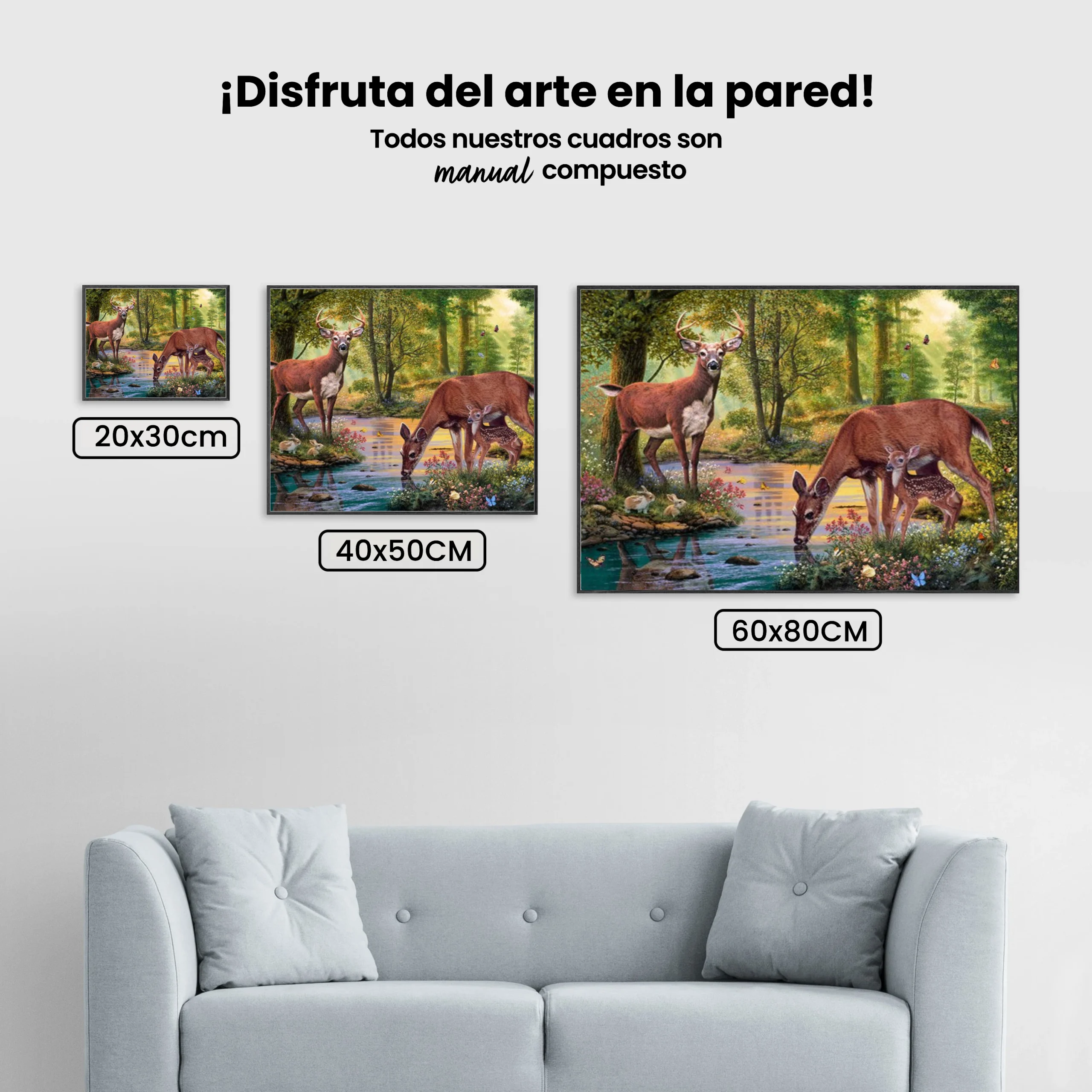 ¿Estás buscando una salida creativa, una actividad divertida para toda la familia? Esto es posible con nuestro set completo y profesional de Diamond Painting – Ciervos Agua potable. Con él podrás crear los más bellos cuadros en casa. El lienzo de alta calidad y transparencia te permite realizar una obra de arte impresionante en poco tiempo. Libera tu creatividad con tus propias creaciones. Diamond Painting es el pasatiempo perfecto para ti solo o para disfrutar en familia.