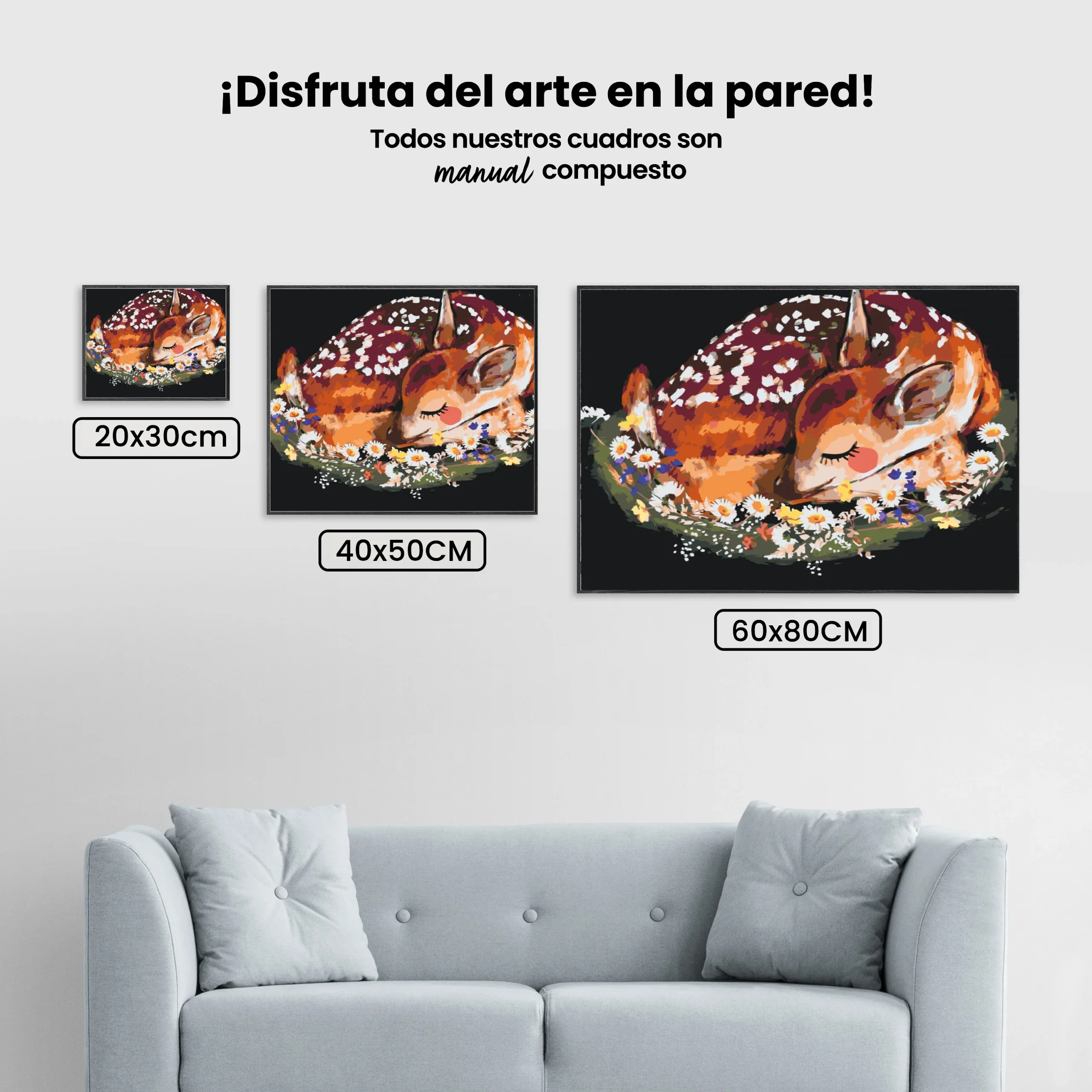 ¿Estás buscando una salida creativa, una actividad divertida para toda la familia? Esto es posible con nuestro set completo y profesional de Diamond Painting – Ciervos entre flores. Con él podrás crear los más bellos cuadros en casa. El lienzo de alta calidad y transparencia te permite realizar una obra de arte impresionante en poco tiempo. Libera tu creatividad con tus propias creaciones. Diamond Painting es el pasatiempo perfecto para ti solo o para disfrutar en familia.