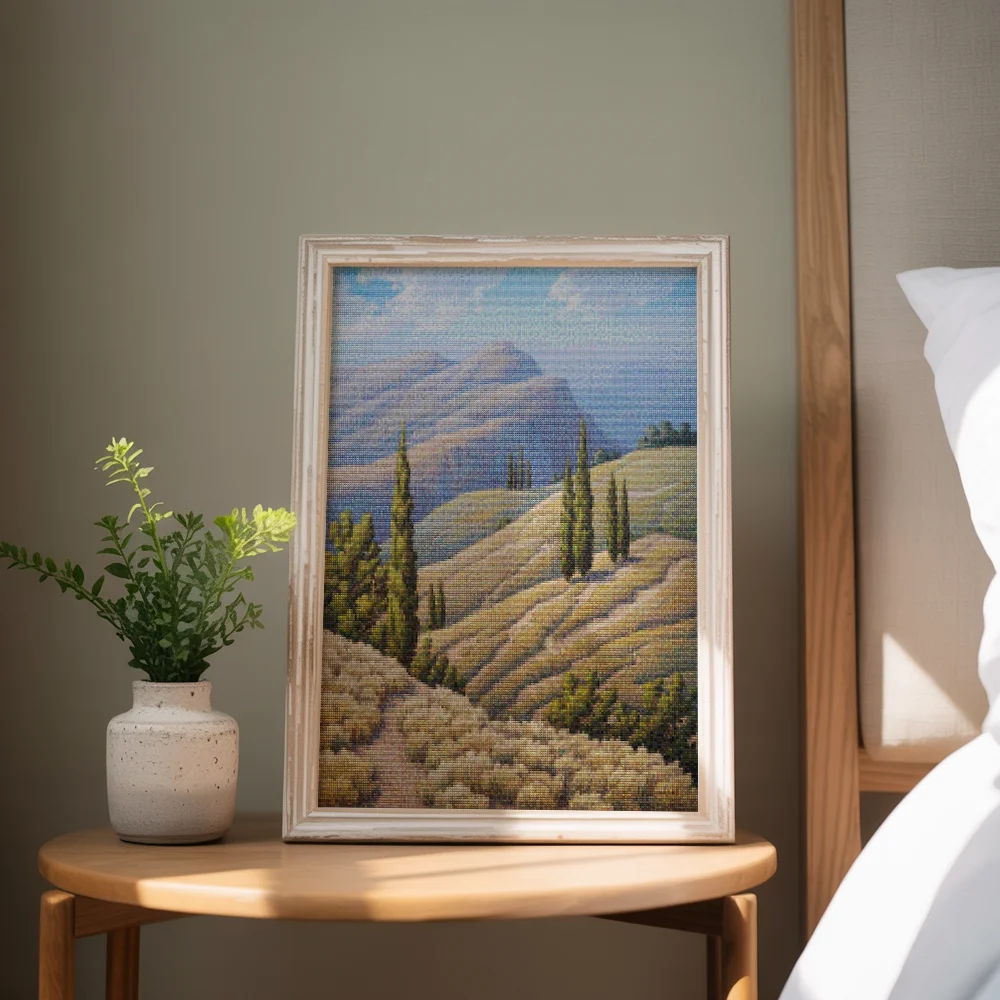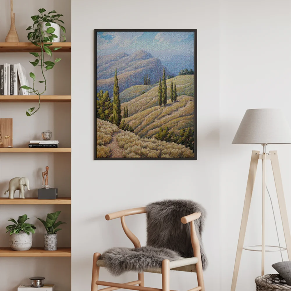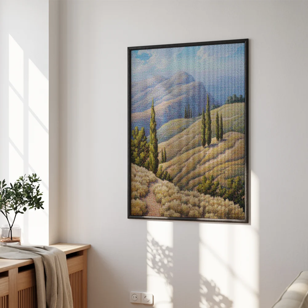 ¿Estás buscando una salida creativa, una actividad divertida para toda la familia? Esto es posible con nuestro set completo y profesional de Diamond Painting – Colinas Sombra de Miel. Con él podrás crear los más bellos cuadros en casa. El lienzo de alta calidad y transparencia te permite realizar una obra de arte impresionante en poco tiempo. Libera tu creatividad con tus propias creaciones. Diamond Painting es el pasatiempo perfecto para ti solo o para disfrutar en familia.