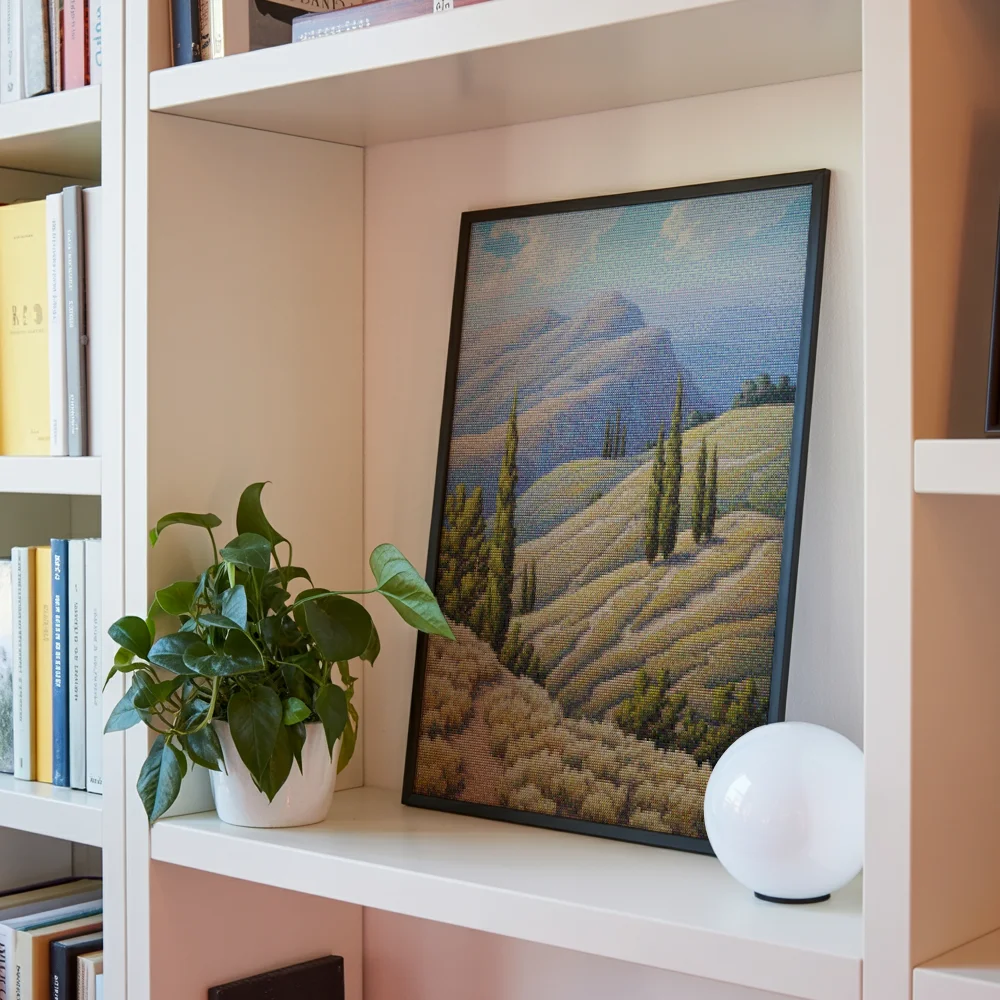 Nuestros kits de Diamond Painting son muy fáciles de usar, así que puedes comenzar a crear desde el primer momento. Antes de empezar a pintar, asegúrate de que el lienzo esté plano y sin arrugas. Alisar el lienzo facilita la colocación de las piedras y la aplicación precisa de los colores. El resto es simple: pon algo de música, enciende una serie, y ¡a pintar! Se recomienda completar primero todos los cuadros de un color antes de pasar al siguiente. Esto te permitirá no tener que limpiar el aplicador tan a menudo y lograr los mejores resultados. Una vez terminada tu pintura, déjala secar al menos un día para evitar manchas y obtener el mejor resultado. Una vez seca, puedes colgarla donde desees.