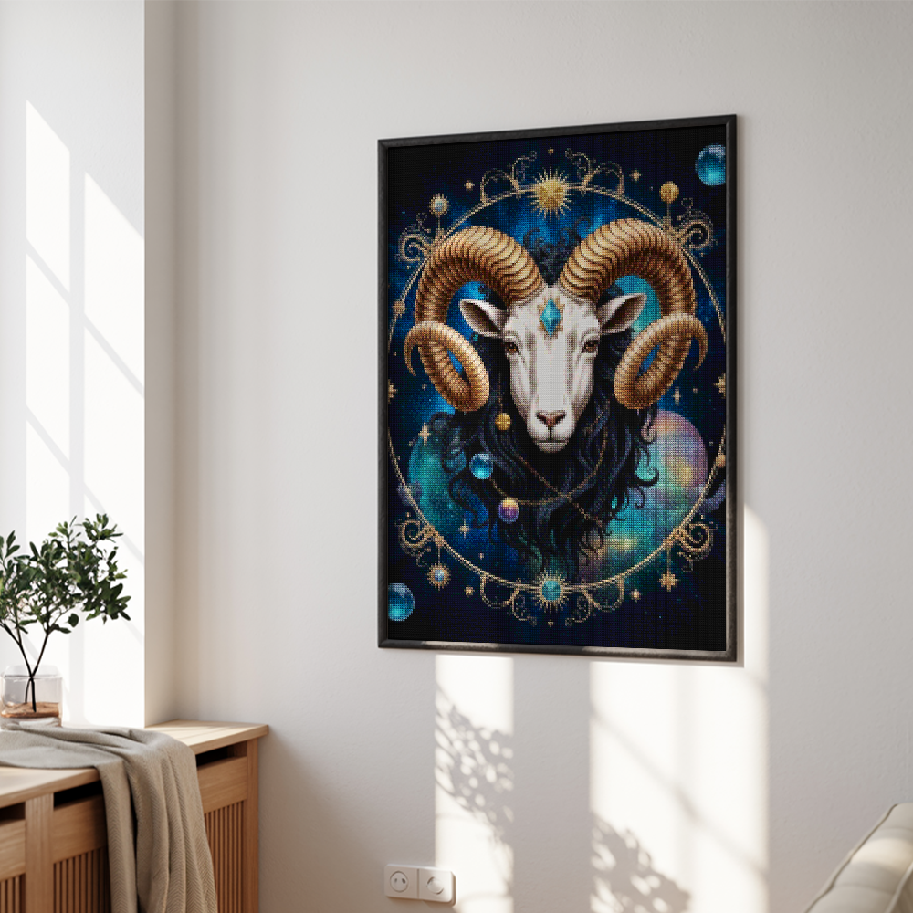¿Estás buscando una salida creativa, una actividad divertida para toda la familia? Esto es posible con nuestro set completo y profesional de Diamond Painting – Constelación – Aries. Con él podrás crear los más bellos cuadros en casa. El lienzo de alta calidad y transparencia te permite realizar una obra de arte impresionante en poco tiempo. Libera tu creatividad con tus propias creaciones. Diamond Painting es el pasatiempo perfecto para ti solo o para disfrutar en familia.