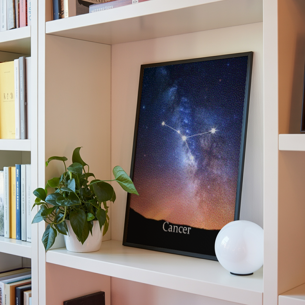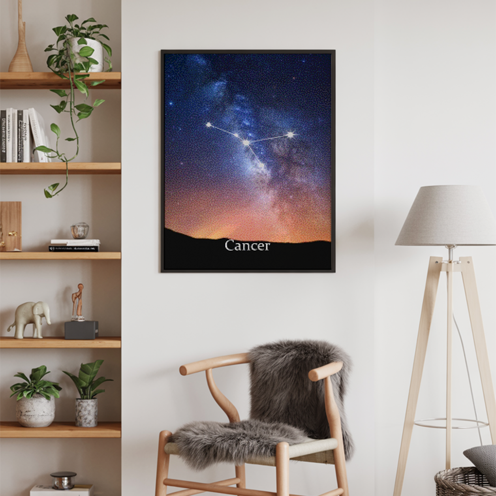 ¿Estás buscando una salida creativa, una actividad divertida para toda la familia? Esto es posible con nuestro set completo y profesional de Diamond Painting – Constelación – Cáncer. Con él podrás crear los más bellos cuadros en casa. El lienzo de alta calidad y transparencia te permite realizar una obra de arte impresionante en poco tiempo. Libera tu creatividad con tus propias creaciones. Diamond Painting es el pasatiempo perfecto para ti solo o para disfrutar en familia.