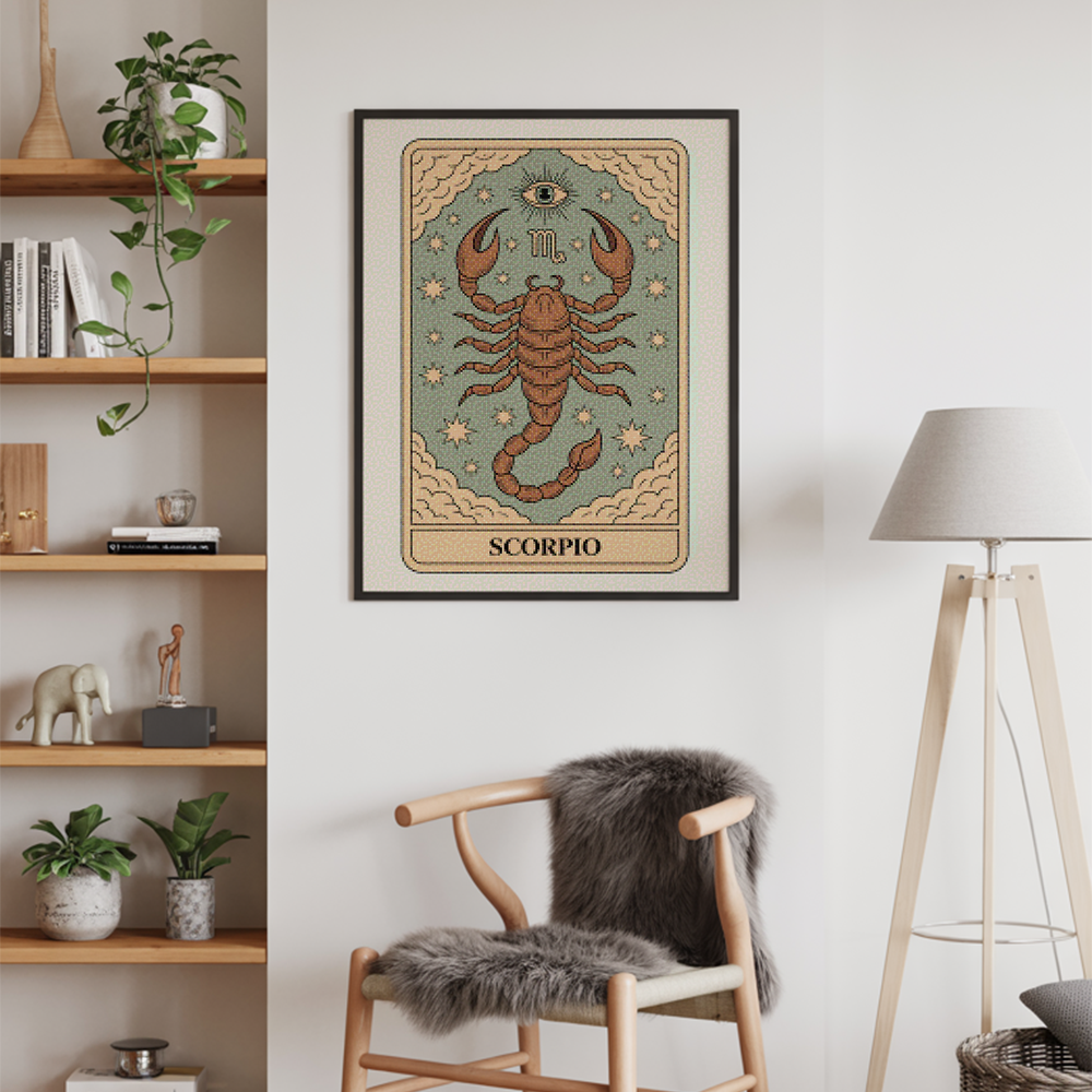 ¿Estás buscando una salida creativa, una actividad divertida para toda la familia? Esto es posible con nuestro set completo y profesional de Diamond Painting – Constelación – Escorpio. Con él podrás crear los más bellos cuadros en casa. El lienzo de alta calidad y transparencia te permite realizar una obra de arte impresionante en poco tiempo. Libera tu creatividad con tus propias creaciones. Diamond Painting es el pasatiempo perfecto para ti solo o para disfrutar en familia.