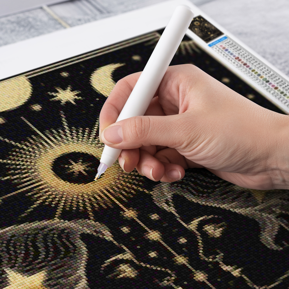 Nuestros kits de Diamond Painting son muy fáciles de usar, así que puedes comenzar a crear desde el primer momento. Antes de empezar a pintar, asegúrate de que el lienzo esté plano y sin arrugas. Alisar el lienzo facilita la colocación de las piedras y la aplicación precisa de los colores. El resto es simple: pon algo de música, enciende una serie, y ¡a pintar! Se recomienda completar primero todos los cuadros de un color antes de pasar al siguiente. Esto te permitirá no tener que limpiar el aplicador tan a menudo y lograr los mejores resultados. Una vez terminada tu pintura, déjala secar al menos un día para evitar manchas y obtener el mejor resultado. Una vez seca, puedes colgarla donde desees.