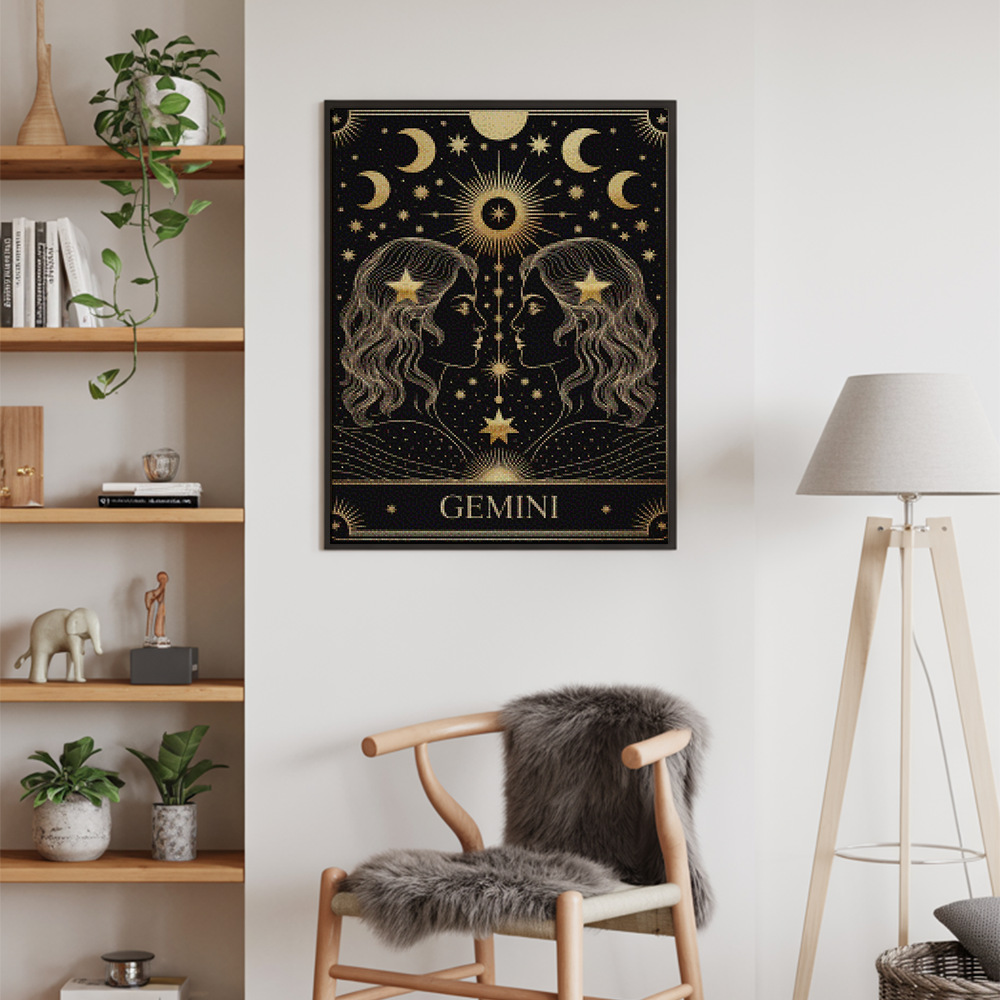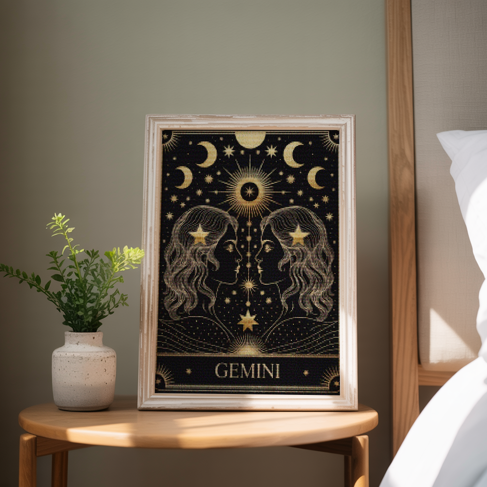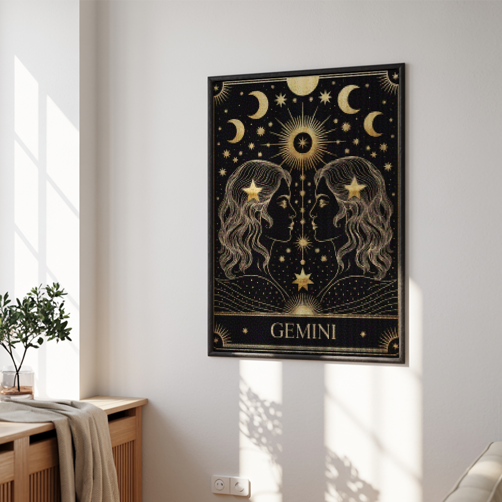 ¿Estás buscando una salida creativa, una actividad divertida para toda la familia? Esto es posible con nuestro set completo y profesional de Diamond Painting – Constelación – Géminis. Con él podrás crear los más bellos cuadros en casa. El lienzo de alta calidad y transparencia te permite realizar una obra de arte impresionante en poco tiempo. Libera tu creatividad con tus propias creaciones. Diamond Painting es el pasatiempo perfecto para ti solo o para disfrutar en familia.