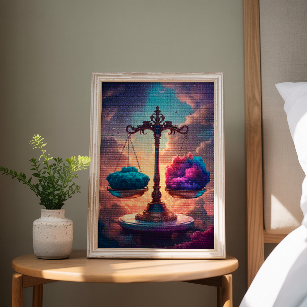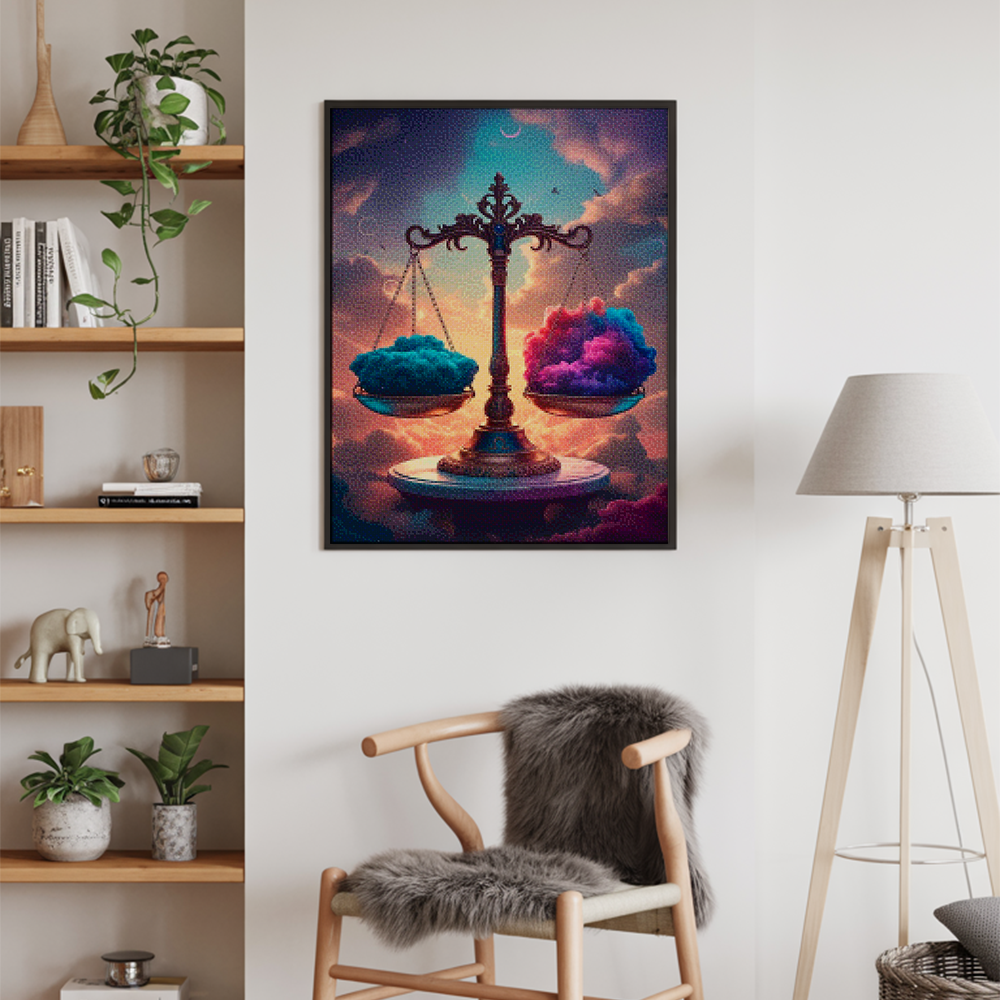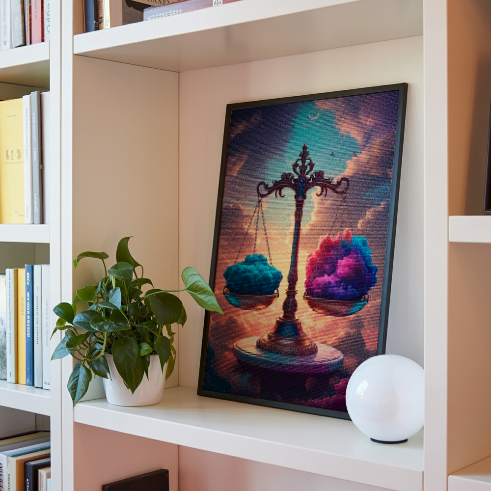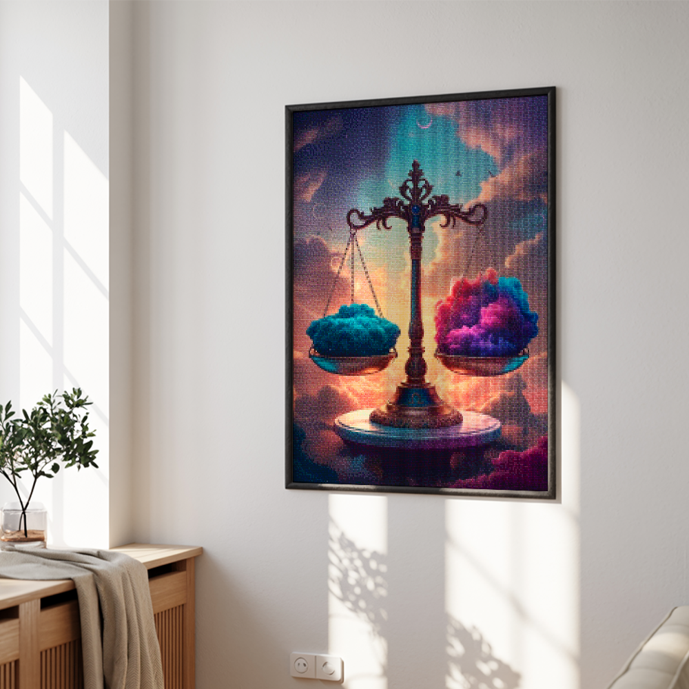 ¿Estás buscando una salida creativa, una actividad divertida para toda la familia? Esto es posible con nuestro set completo y profesional de Diamond Painting – Constelación – Libra. Con él podrás crear los más bellos cuadros en casa. El lienzo de alta calidad y transparencia te permite realizar una obra de arte impresionante en poco tiempo. Libera tu creatividad con tus propias creaciones. Diamond Painting es el pasatiempo perfecto para ti solo o para disfrutar en familia.