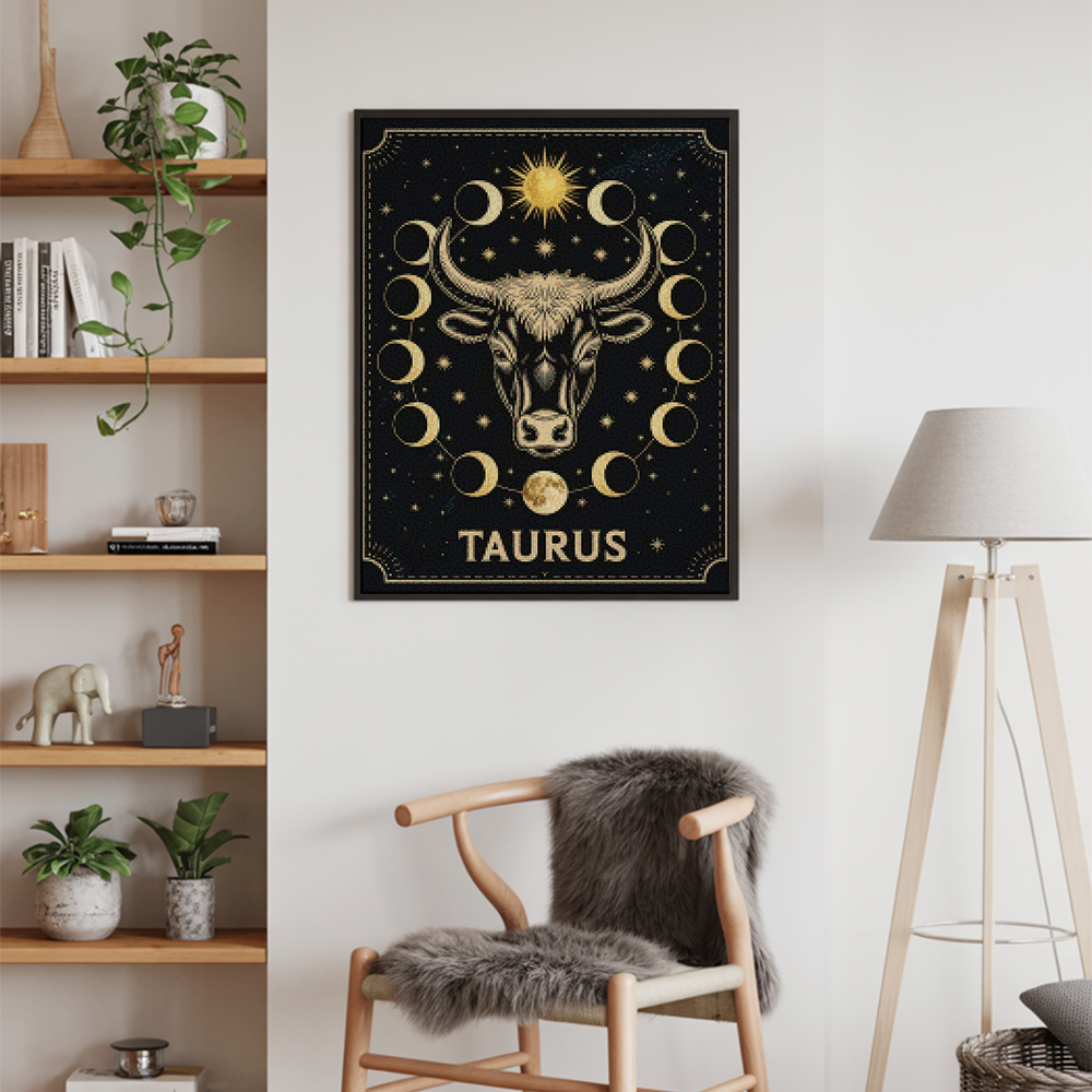 ¿Estás buscando una salida creativa, una actividad divertida para toda la familia? Esto es posible con nuestro set completo y profesional de Diamond Painting – Constelación – Tauro. Con él podrás crear los más bellos cuadros en casa. El lienzo de alta calidad y transparencia te permite realizar una obra de arte impresionante en poco tiempo. Libera tu creatividad con tus propias creaciones. Diamond Painting es el pasatiempo perfecto para ti solo o para disfrutar en familia.