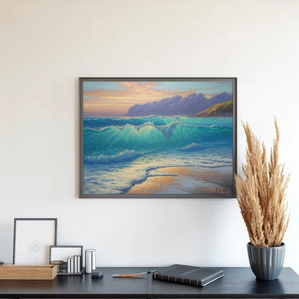 Nuestros kits de Diamond Painting son muy fáciles de usar, así que puedes comenzar a crear desde el primer momento. Antes de empezar a pintar, asegúrate de que el lienzo esté plano y sin arrugas. Alisar el lienzo facilita la colocación de las piedras y la aplicación precisa de los colores. El resto es simple: pon algo de música, enciende una serie, y ¡a pintar! Se recomienda completar primero todos los cuadros de un color antes de pasar al siguiente. Esto te permitirá no tener que limpiar el aplicador tan a menudo y lograr los mejores resultados. Una vez terminada tu pintura, déjala secar al menos un día para evitar manchas y obtener el mejor resultado. Una vez seca, puedes colgarla donde desees.