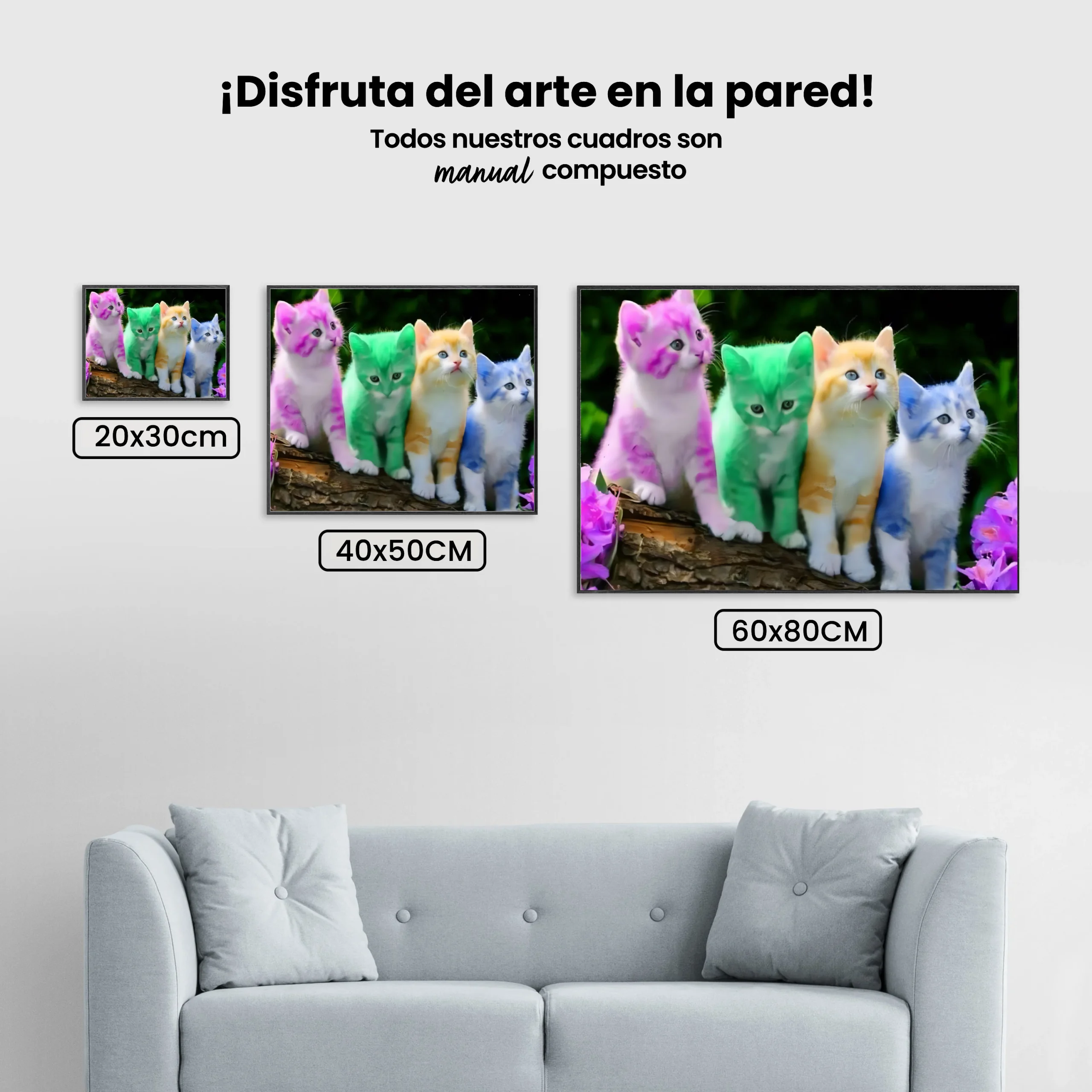 ¿Estás buscando una salida creativa, una actividad divertida para toda la familia? Esto es posible con nuestro set completo y profesional de Diamond Painting – Cuatro colores de gatitos. Con él podrás crear los más bellos cuadros en casa. El lienzo de alta calidad y transparencia te permite realizar una obra de arte impresionante en poco tiempo. Libera tu creatividad con tus propias creaciones. Diamond Painting es el pasatiempo perfecto para ti solo o para disfrutar en familia.