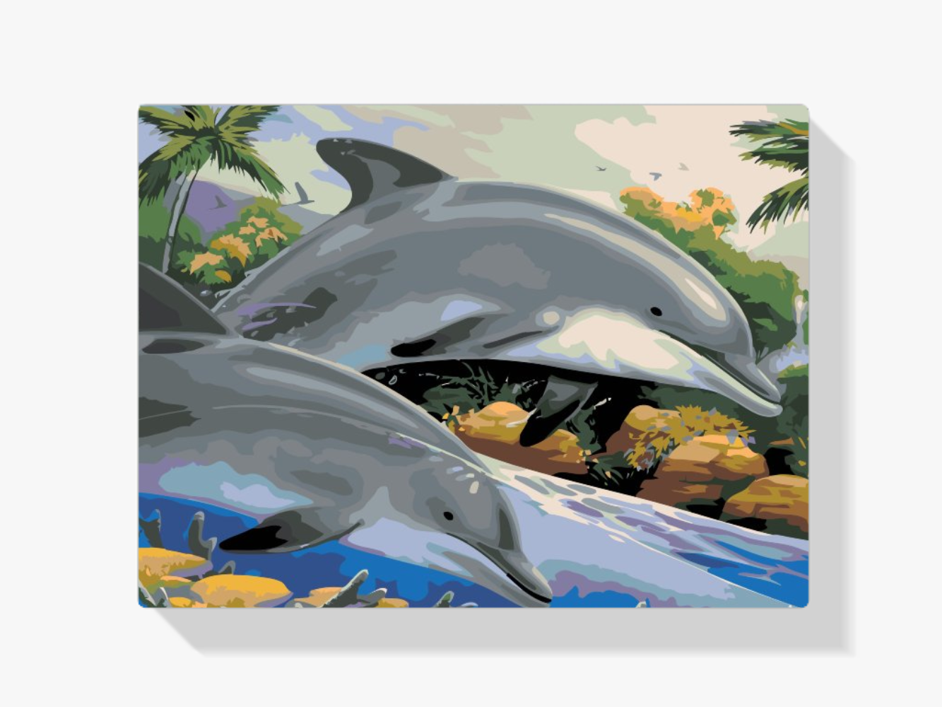 ¿Estás buscando una salida creativa, una actividad divertida para toda la familia? Esto es posible con nuestro set completo y profesional de Diamond Painting – Delfines en el mar. Con él podrás crear los más bellos cuadros en casa. El lienzo de alta calidad y transparencia te permite realizar una obra de arte impresionante en poco tiempo. Libera tu creatividad con tus propias creaciones. Diamond Painting es el pasatiempo perfecto para ti solo o para disfrutar en familia.
