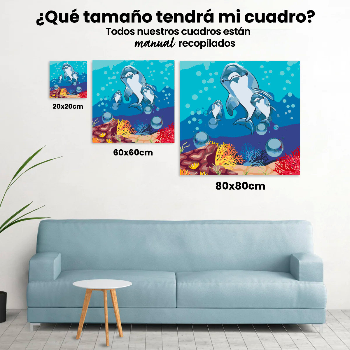 ¿Estás buscando una salida creativa, una actividad divertida para toda la familia? Esto es posible con nuestro set completo y profesional de Diamond Painting – Delfines. Con él podrás crear los más bellos cuadros en casa. El lienzo de alta calidad y transparencia te permite realizar una obra de arte impresionante en poco tiempo. Libera tu creatividad con tus propias creaciones. Diamond Painting es el pasatiempo perfecto para ti solo o para disfrutar en familia.