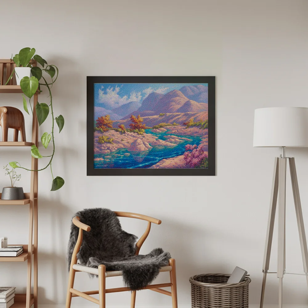 Nuestros kits de Diamond Painting son muy fáciles de usar, así que puedes comenzar a crear desde el primer momento. Antes de empezar a pintar, asegúrate de que el lienzo esté plano y sin arrugas. Alisar el lienzo facilita la colocación de las piedras y la aplicación precisa de los colores. El resto es simple: pon algo de música, enciende una serie, y ¡a pintar! Se recomienda completar primero todos los cuadros de un color antes de pasar al siguiente. Esto te permitirá no tener que limpiar el aplicador tan a menudo y lograr los mejores resultados. Una vez terminada tu pintura, déjala secar al menos un día para evitar manchas y obtener el mejor resultado. Una vez seca, puedes colgarla donde desees.