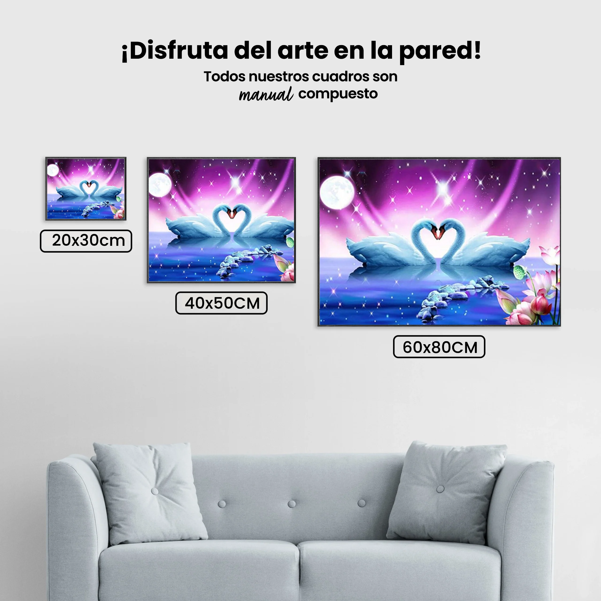 ¿Estás buscando una salida creativa, una actividad divertida para toda la familia? Esto es posible con nuestro set completo y profesional de Diamond Painting – Dos cisnes | Gran formato. Con él podrás crear los más bellos cuadros en casa. El lienzo de alta calidad y transparencia te permite realizar una obra de arte impresionante en poco tiempo. Libera tu creatividad con tus propias creaciones. Diamond Painting es el pasatiempo perfecto para ti solo o para disfrutar en familia.